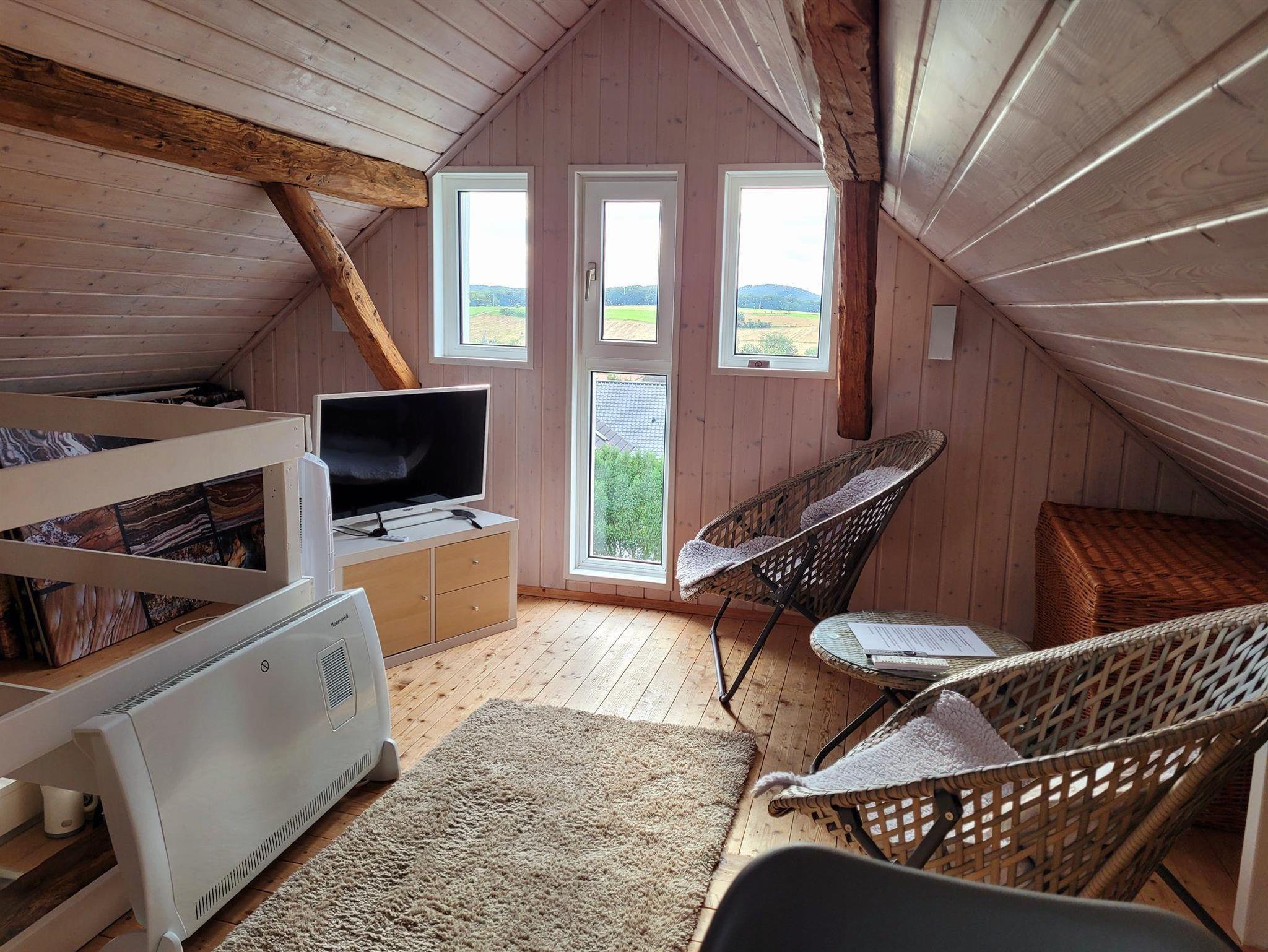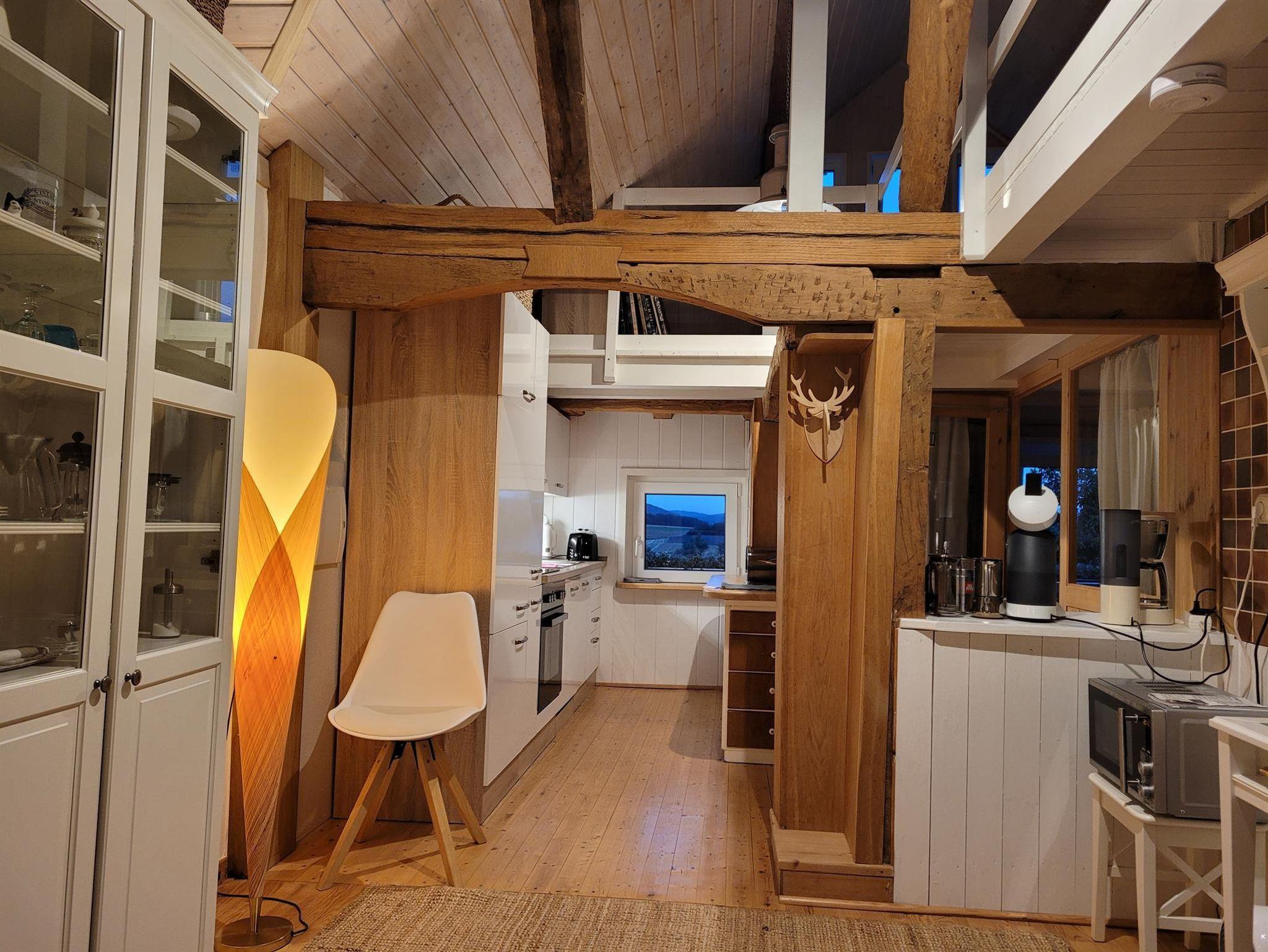 Familienfreundliches, charmantes und gemütliches Ferienhaus, direkt am Wald und dennoch in Stadtnähe gelegen, für 1 bis 5 Personen mit 2 Bädern, 2 Schlafzimmern und einer Galerie sowie einer vollständig eingerichteten Küche, WLAN kostenlos, Waschmaschine und Trockner kostenfrei nutzbar.