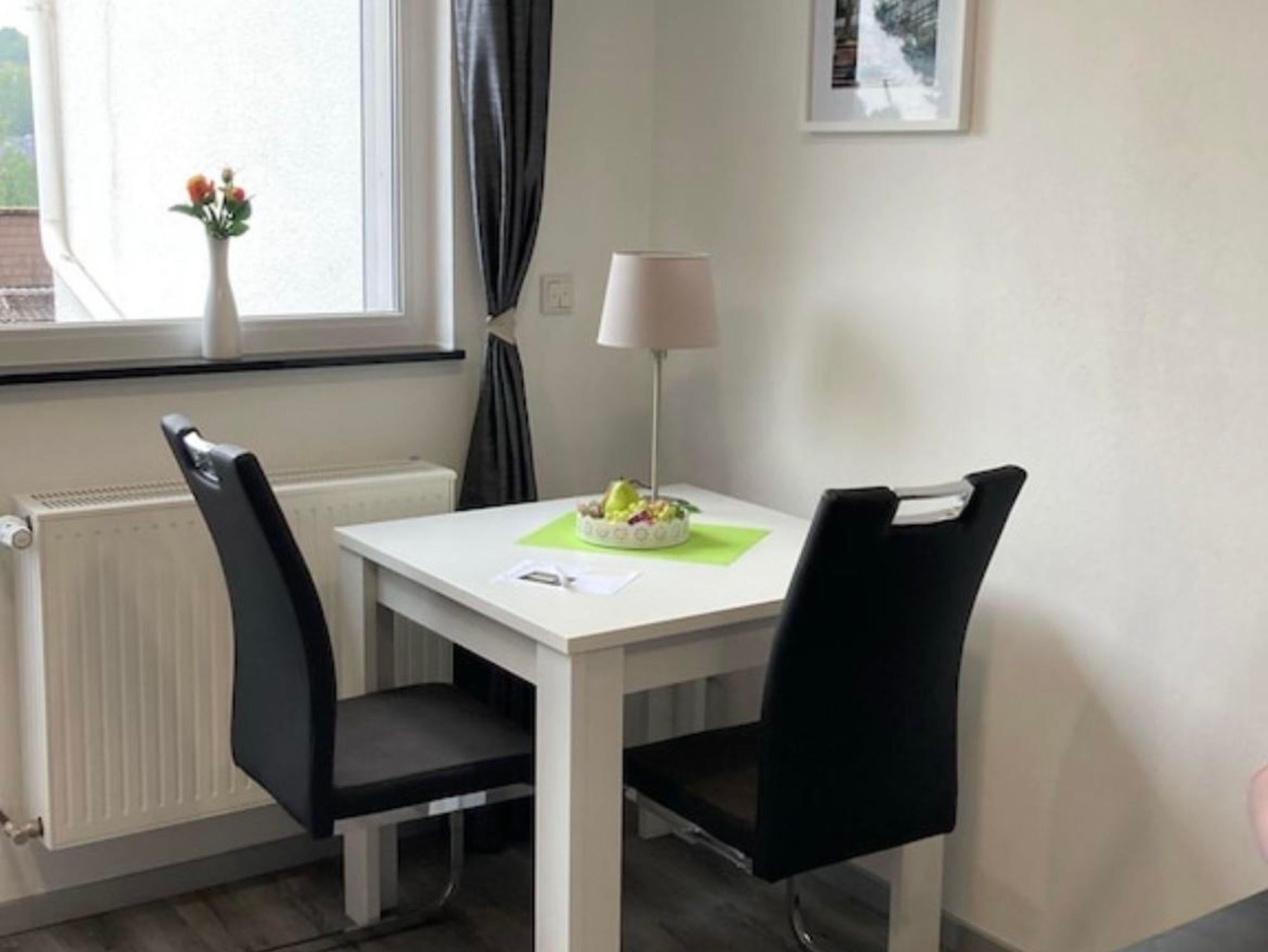 Es handelt sich um eine Nichtraucherwohnung. Bei der Ferienwohnung handelt es sich um eine komplett neu ausgebaute Wohnung mit folgender Ausstattung: Fernseher, Bluetooth-Musikbox, Duschbad, WiFi, ausgestattete Küche (ohne Spülmaschine) mit eigenem Essbereich.
