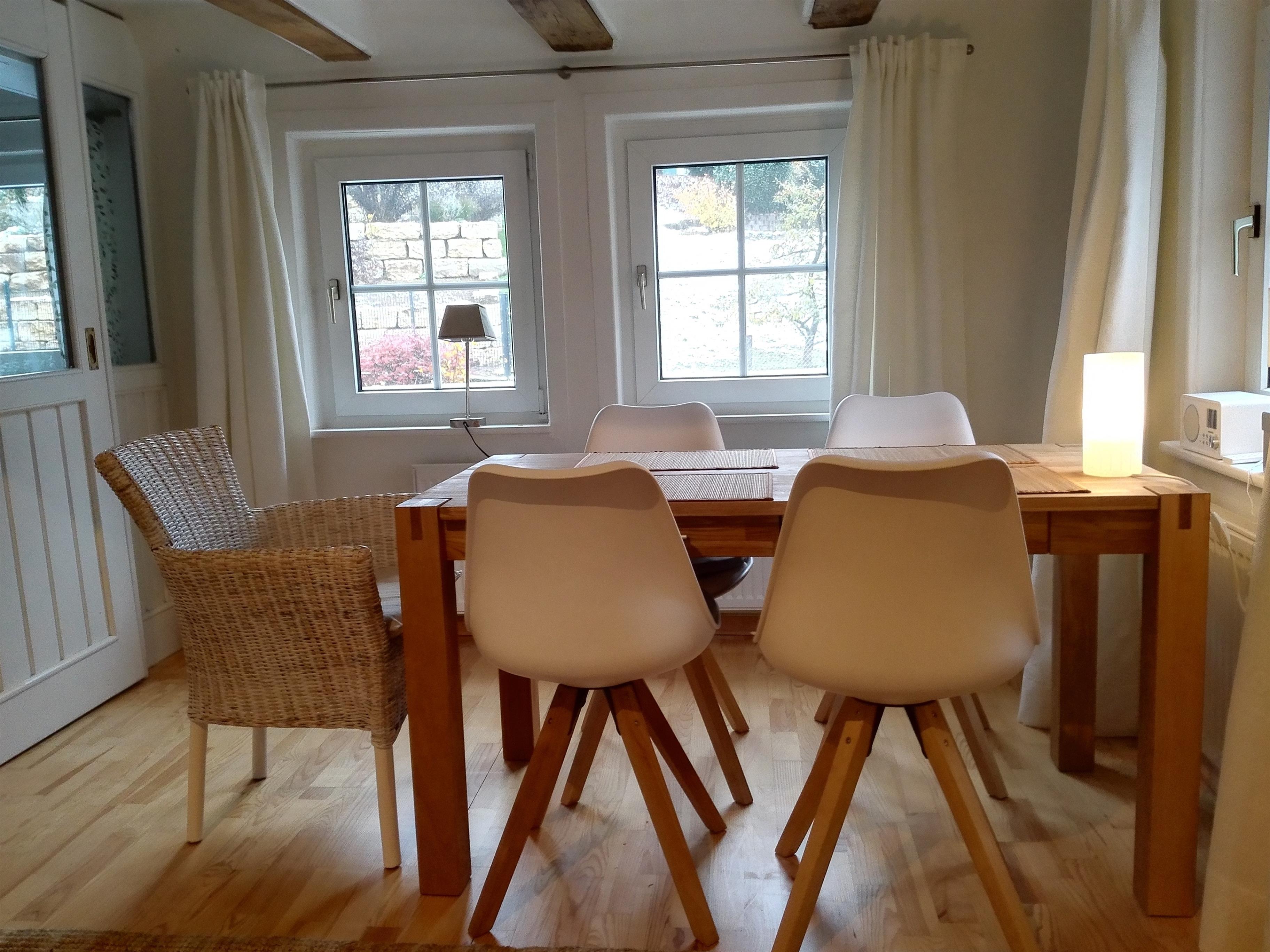 Das an das Wohnhaus der Vermieter angrenzende Landhaus (errichtet 1862) wurde im Sommer /Herbst 2016 von Grund auf renoviert und durchgehend neu möbliert. Es verfügt über ca. 120 qm Wohnfläche, einen eigenen Hauseingang und eigenen Zugang zur Straße sowie eine (teilweise überdachte) Terrasse mit Sitzgruppe und Stein- sowie Holzbank mit Blick in den Garten.