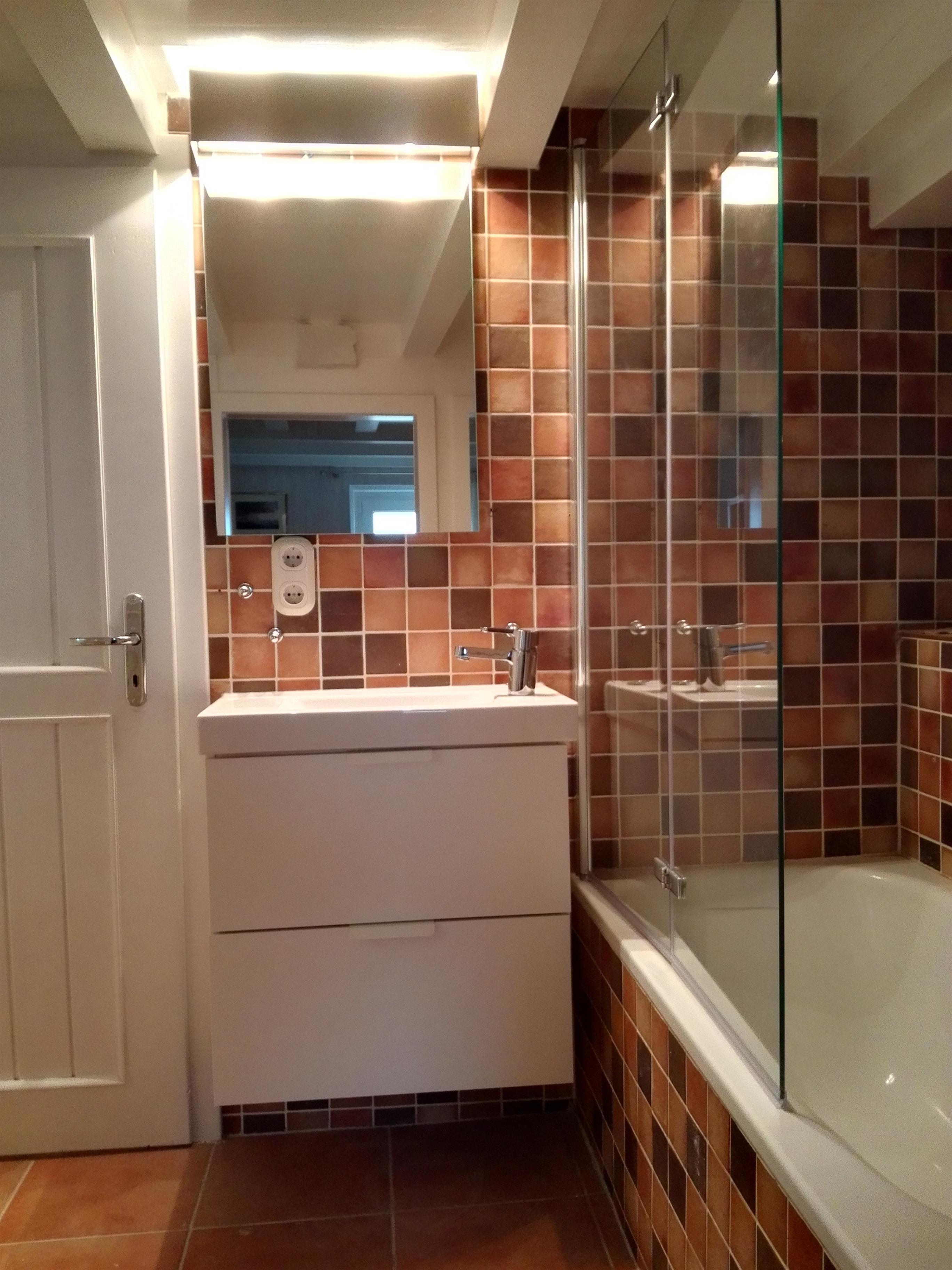 Badeværelse med bruser og badekar
