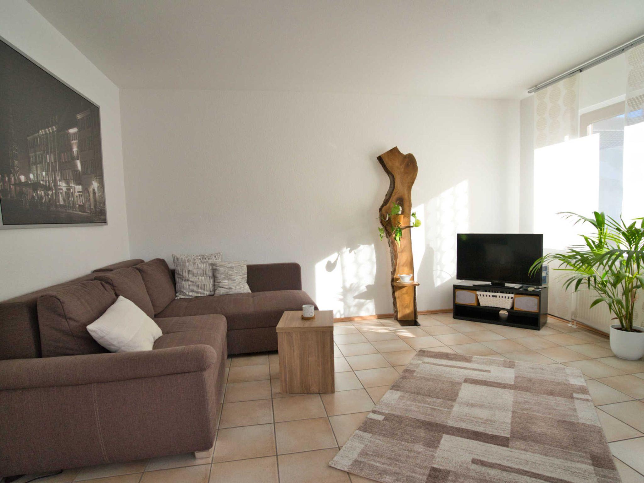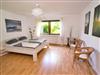 Die Wohnfläche beträgt komfortable 70 qm im Erdgeschoß und ist barrierefrei mit ruhigem Schlafzimmer (2 Pers). Der große Wohn und Essbereich besitzt eine Küchenzeile mit Mikrowelle, Kühlschrank, Geschirrspüler, Wasserkocher, Kaffeeautomat, Töpfe, Geschirr, Gläser, Besteck u.v.m. Auf der Schlafcouch sind zwei weitere Schlafplätze vorhanden. W-LAN und ein großer TV-Flachbildschirm werden ebenfalls zur Verfügung gestellt. Das Badezimmer verfügt über ein WC, Dusche u. Waschtisch. Ein Kinderbettchen kann bei Bedarf gestellt werden, somit ist Platz für 4 Erwachsene und ein Kleinkind.