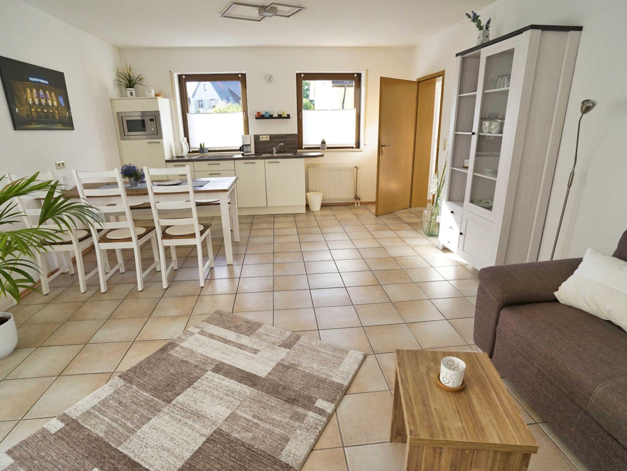 Unsere Ferienwohnung liegt sehr ruhig gelegen, zentral in Holzhausen. Raumaufteilung Die Wohnung ist liebevoll eingerichtet und bietet Ihnen alles was Sie benötigen. Sie hat ein geräumiges Schlafzimmer mit einem großen Doppelbett. Im Wohnbereich ist eine Schlafcouch, die zusätzlich für 2 Personen geeignet ist. Haben Sie Lust auf eine Tasse Kaffee, Espresso oder Tee? Mit unserem Kaffee Kapselautomat können Sie sich bedienen. Kapseln, Milch und Teebeutel sind im Küchenbereich vorhanden. Die Küche hat einen Mikrowellenherd, Spülmaschine und einen geräumigen Kühlschrank. Ein Kinderbett und W-LAN wird kostenfrei zur Verfügung gestellt.