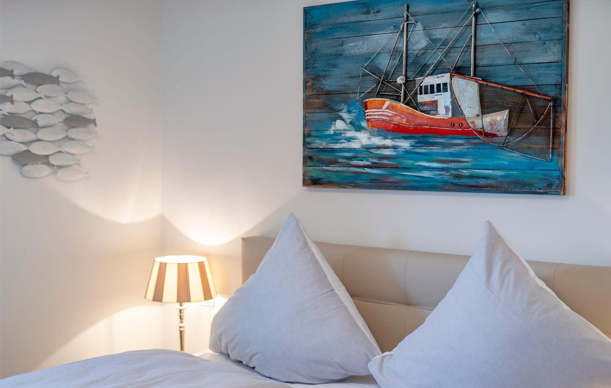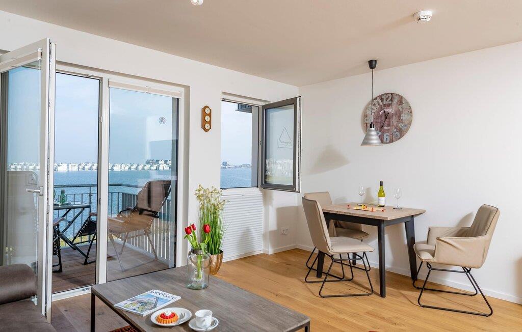 Moderne og hyggeligt. Beliggende direkte på havnepromenaden i Østersøresortet Olpenitz scorer denne lyse ferielejlighed point takket være dens vinduesfront fra gulv til loft med en fænomenal udsigt over sejl- og lystbådshavnen, den flydende huse og østersøfjorden Slien En havnebiograf er garanteret her, ligesom de billedskønne solnedgange kan observeres fra balkonen.