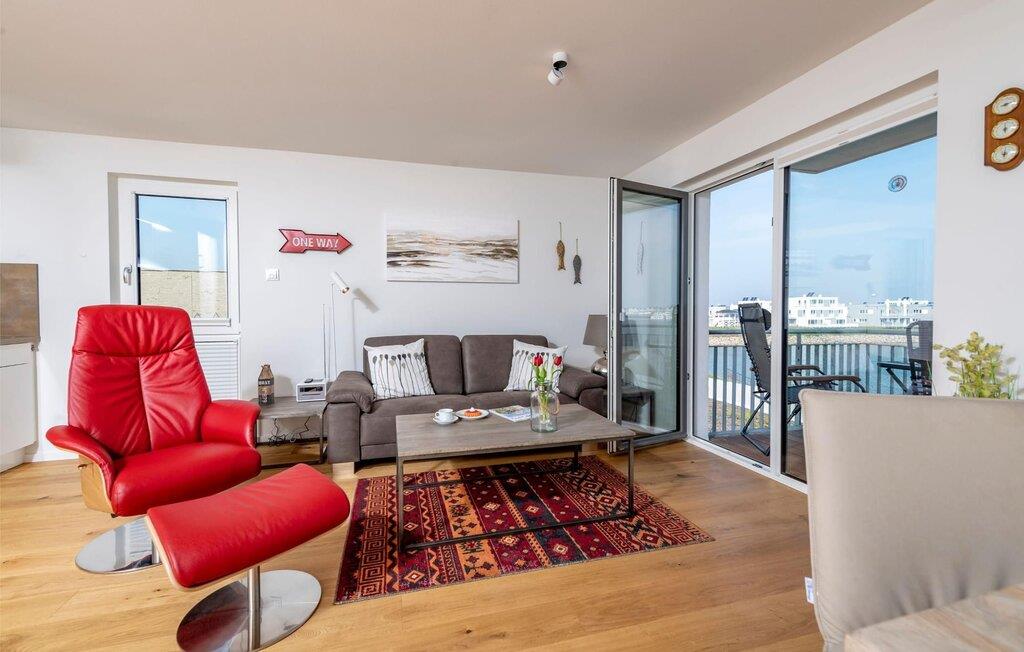 Placeret over tingene kan sejlskibe, der passerer ved indsejlingen til Østersøen, observeres fra hele opholds-/spiseområdet og balkonen. Udsigten falder på Schimmelünde fyrtårn og idyllen i landskabsbeskyttelsesområdet omkring det. Havnepromenaden ligger lige under ferielejligheden og er ideel til slentreture. Telekom-hjemmeunderholdningsprogrammet tilbyder ekstra underholdning på fladskærms-tv'et i stuen, som kan nydes fra den komfortable sofa eller den afslappende lænestol.