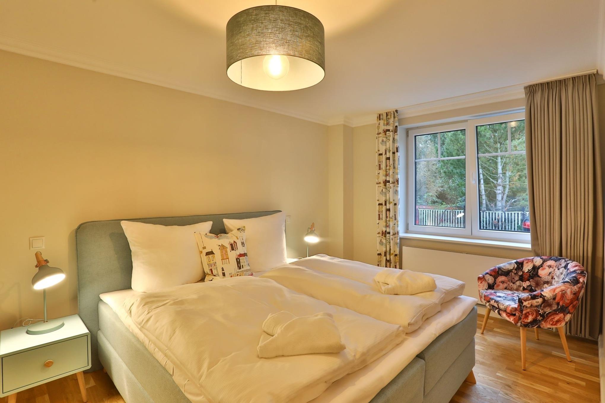 Die Wohnung verfügt über einen offenen, gemütlichen und modernen Wohn- und Essbereich, 2 Schlafzimmer und ein Badezimmer. Vom Wohn- und Essbereich aus gelangen Sie auf eine großzügige, südausgerichtete Terrasse mit Blick Richtung "Reethus Rotbuche" und Innenhof.