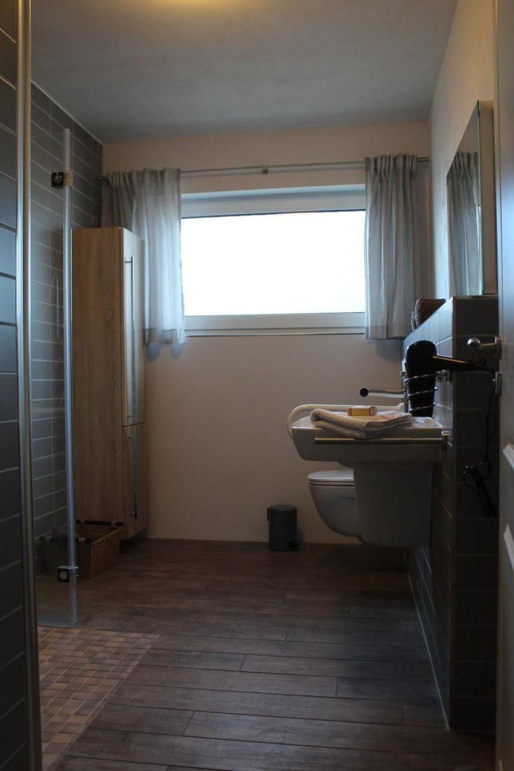 Other bathroom facilities: The bathroom has underfloor heating and a towel warmer. Bright light enters the room through the outside window. The bathroom is barrier-free and has a walk-in shower.