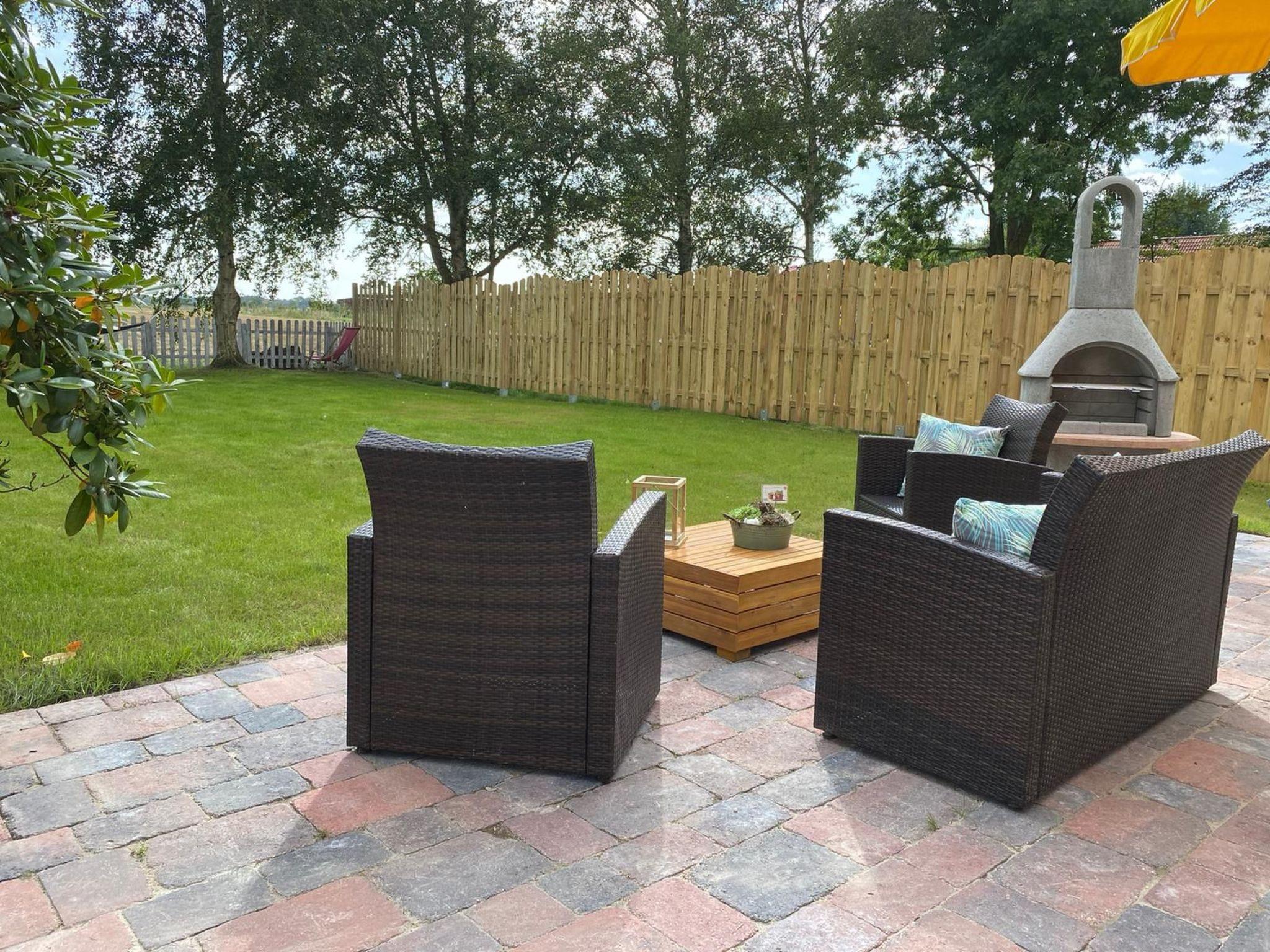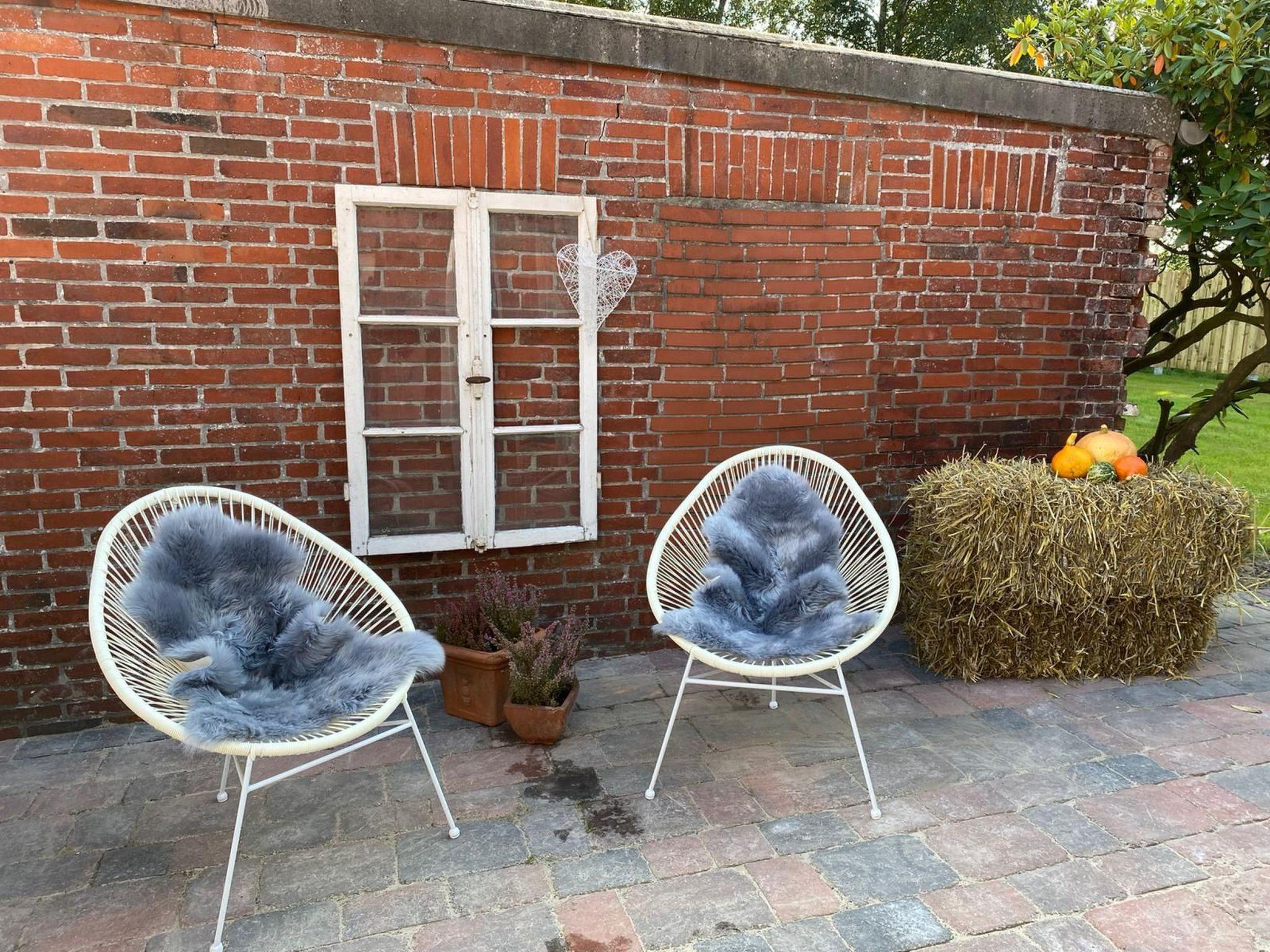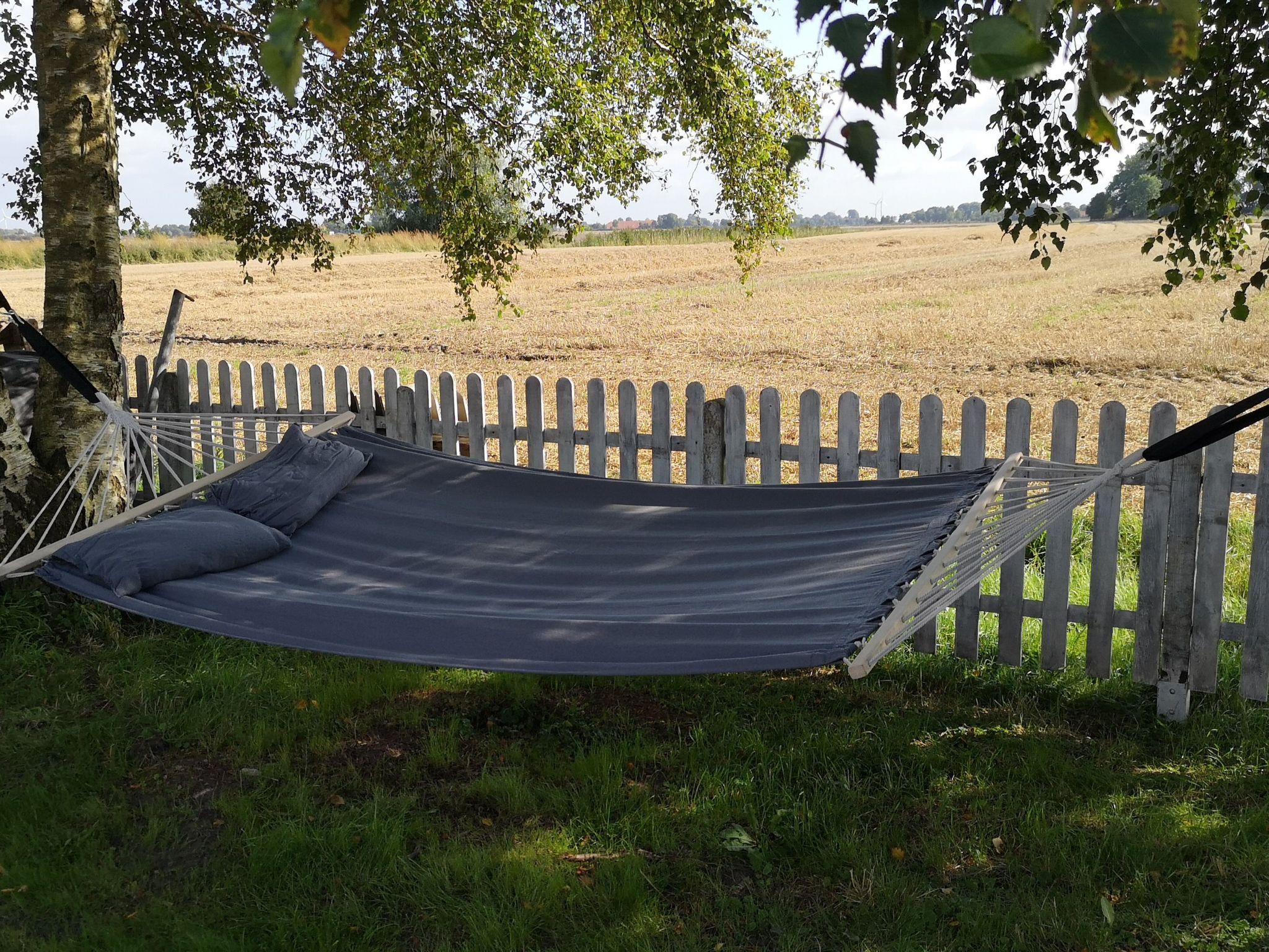 Outside the holiday flat, the spacious garden with its well-tended lawn, a terrace including a beach chair, seating furniture and a charcoal barbecue invites you to linger and enjoy. A hammock stretched between two old birch trees offers a direct view of the neighbouring cornfield - an ideal place to relax and dream in the open air. The outdoor furniture, consisting of a table set with four chairs and a lounge corner set with table, completes the picture of a perfect outdoor area.