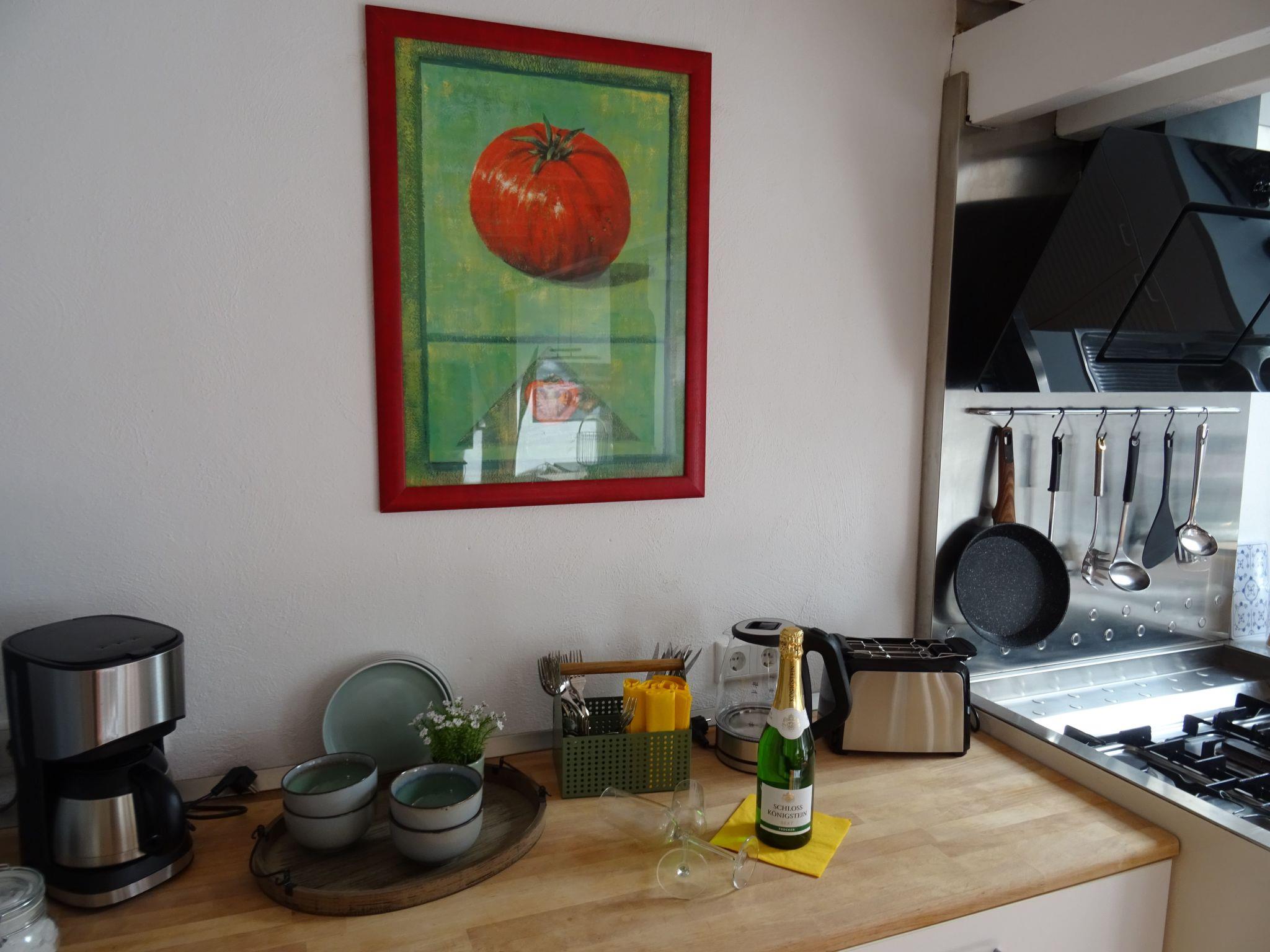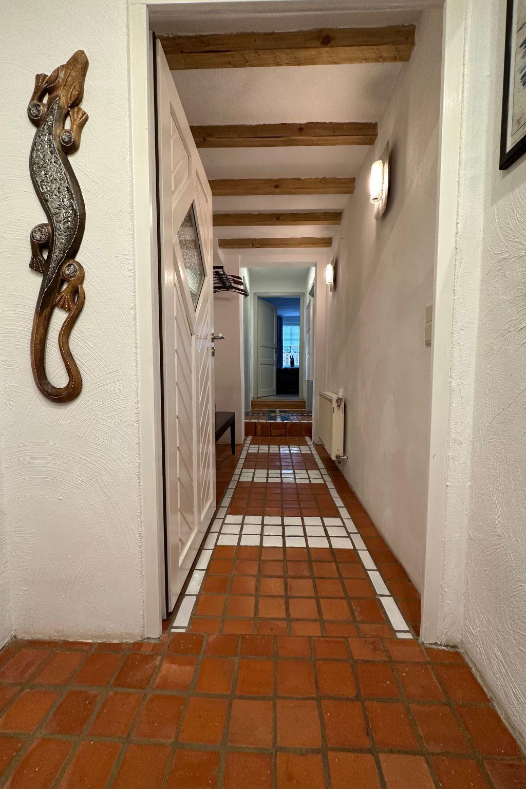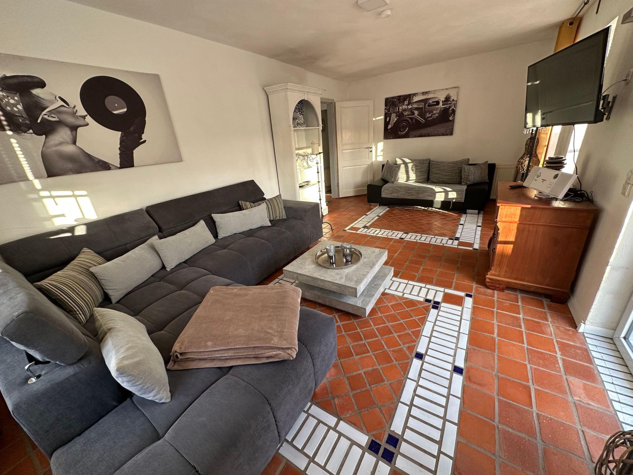 The interior of the holiday flat impresses with its spaciousness, brightness and sunshine. Having recently undergone a comprehensive renovation, guests can expect high living standards: from handmade clay tiles from Morocco to a fully equipped kitchen with modern amenities such as a new fridge with freezer compartment, a gas hob with oven and a dishwasher. A large sofa set with sleeping function, additional sofa bed and satellite TV in the kitchen, living room and bedroom also ensure optimum comfort, while the free WiFi ensures a problem-free connection to the outside world.