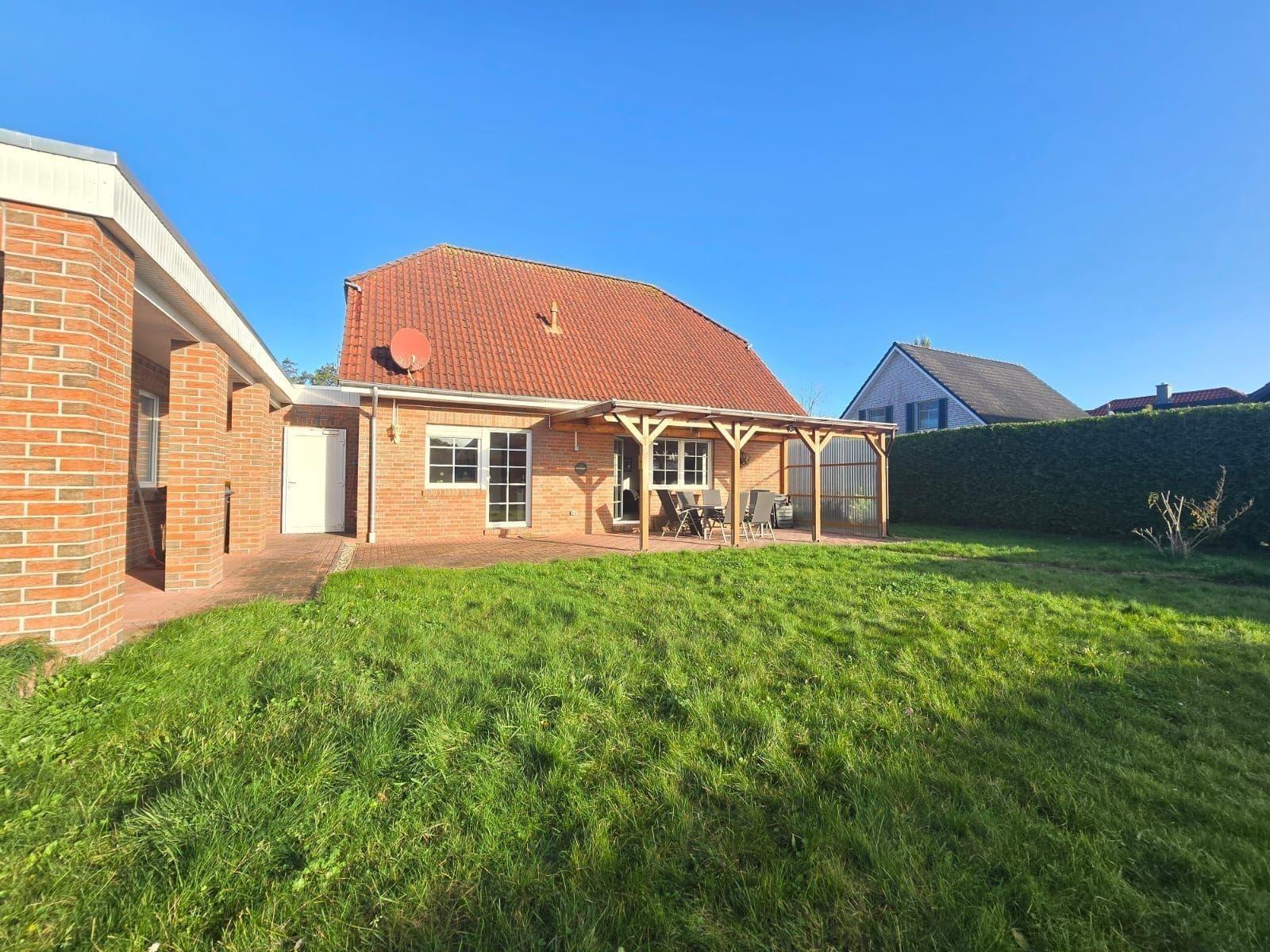 Der Außenbereich des Ferienhauses Dat Steenhuus in Marienhafe ist eine Oase der Entspannung und bietet ideale Voraussetzungen für einen gelungenen Urlaub. Eine vollständig eingezäunte Terrasse in Süd-West-Lage ermöglicht ungestörte Momente im Freien – perfekt für Familien und Hundebesitzer, da bis zu vier Hunde herzlich willkommen sind. Der große Garten lädt zum Spielen und Entspannen ein, während der Zugang zur überdachten Terrasse das Verweilen bei jedem Wetter angenehm gestaltet. Gemeinsam nutzbare Bereiche sorgen dafür, dass sich die Gäste wohlfühlen und die Natur der ostfriesischen Landschaft genießen können. Die Lage des Ferienhauses erlaubt zudem direkte Spaziergänge entlang der malerischen Deichlandschaften oder durch den historischen Ortskern von Marienhafe. Der Außenbereich bietet somit einen harmonischen Rückzugsort, der Wohlfühlen auf ganzer Linie garantiert.