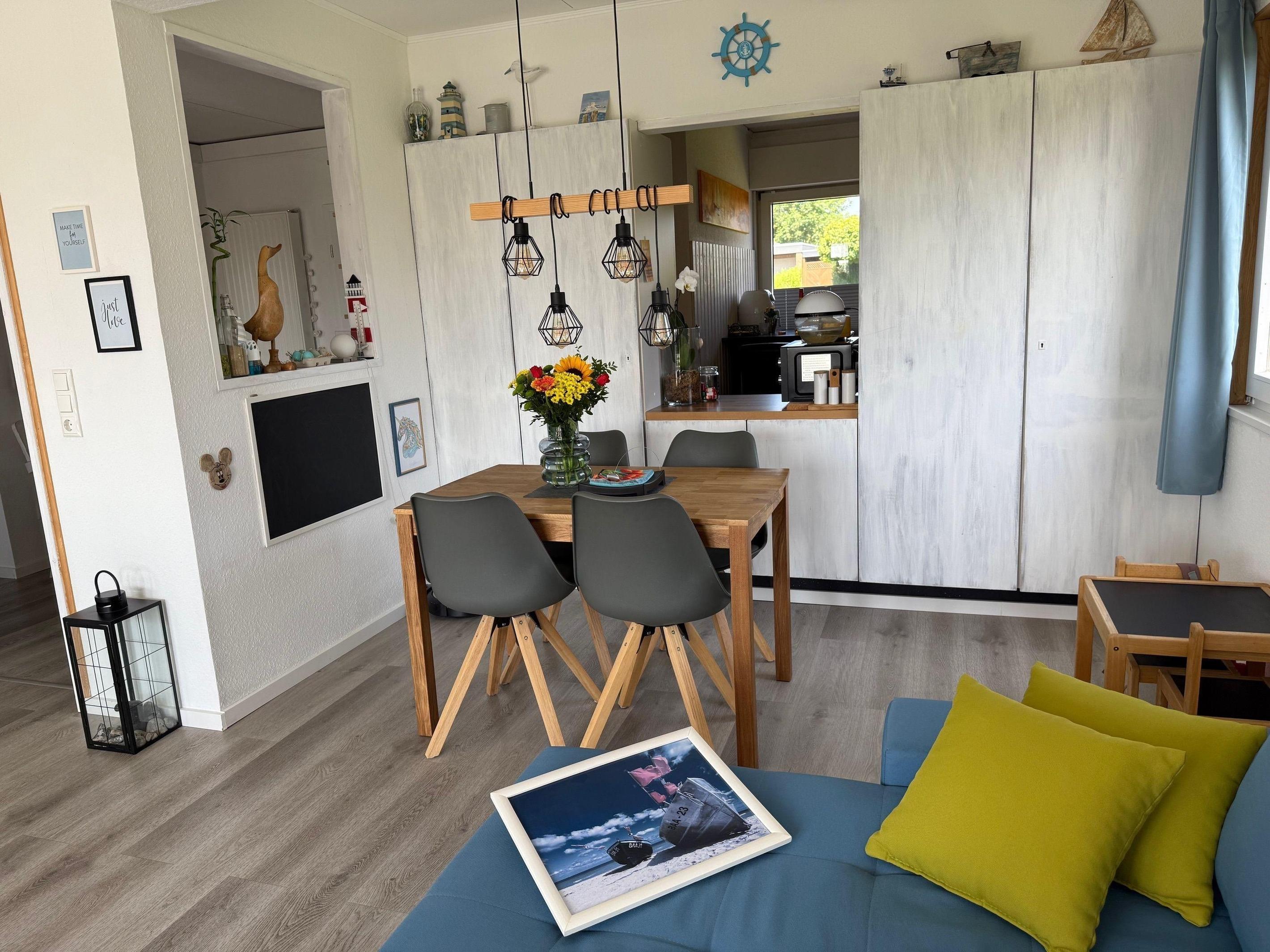 Die strandnahe und helle Ferienwohnung freut sich auf bis zu 4 Gäste (optional +1 Kind)! Hunde und andere Haustiere sind willkommen! Es ist eine voll ausgestattete Wohnung inkl. Kaminofen mit Südterrasse.