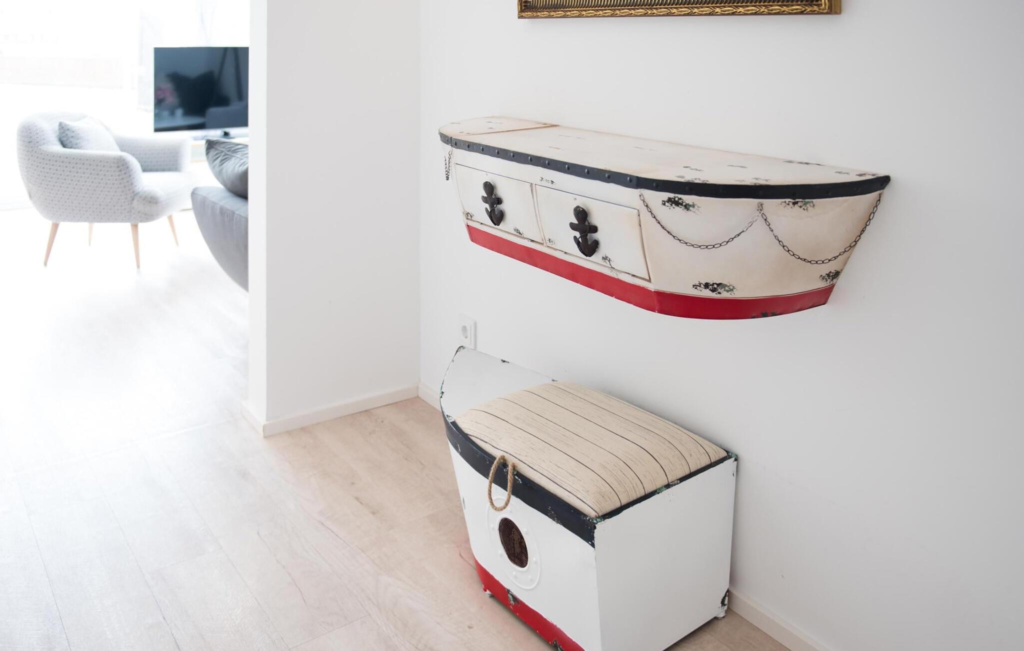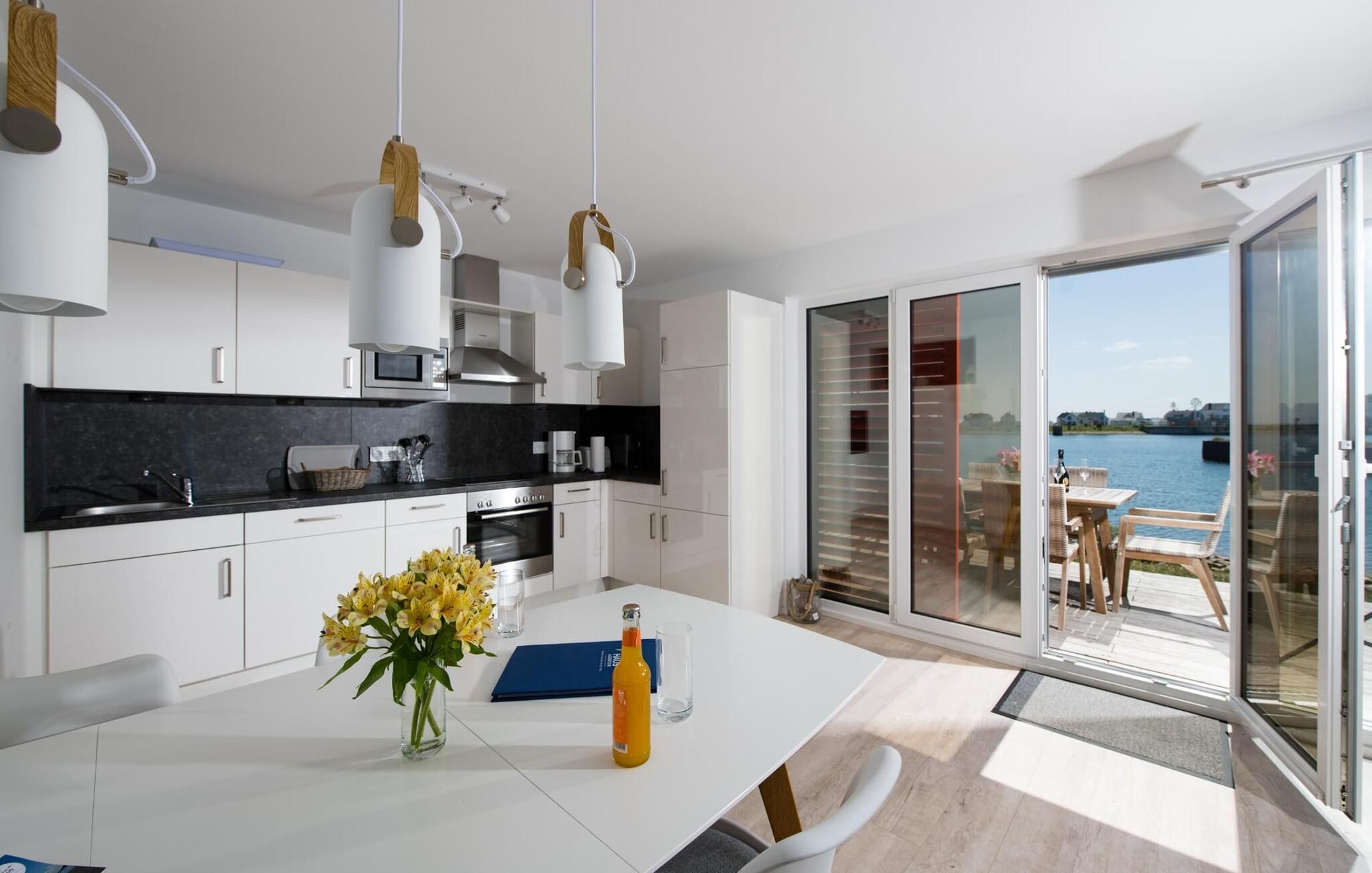Fantastisk udsigt åbner op fra opholdsstuen og på den tilstødende terrasse med udsigt over lystbådehavnen. Havnebiografen sørger for underholdning under en hyggelig grillaften eller en romantisk middag i levende lys. På ferien er der tid til kreativ madlavning, det fuldt udstyrede køkken-alrum lader intet tilbage at ønske. Morgenmad lige ved vandet, ren feriefølelse.