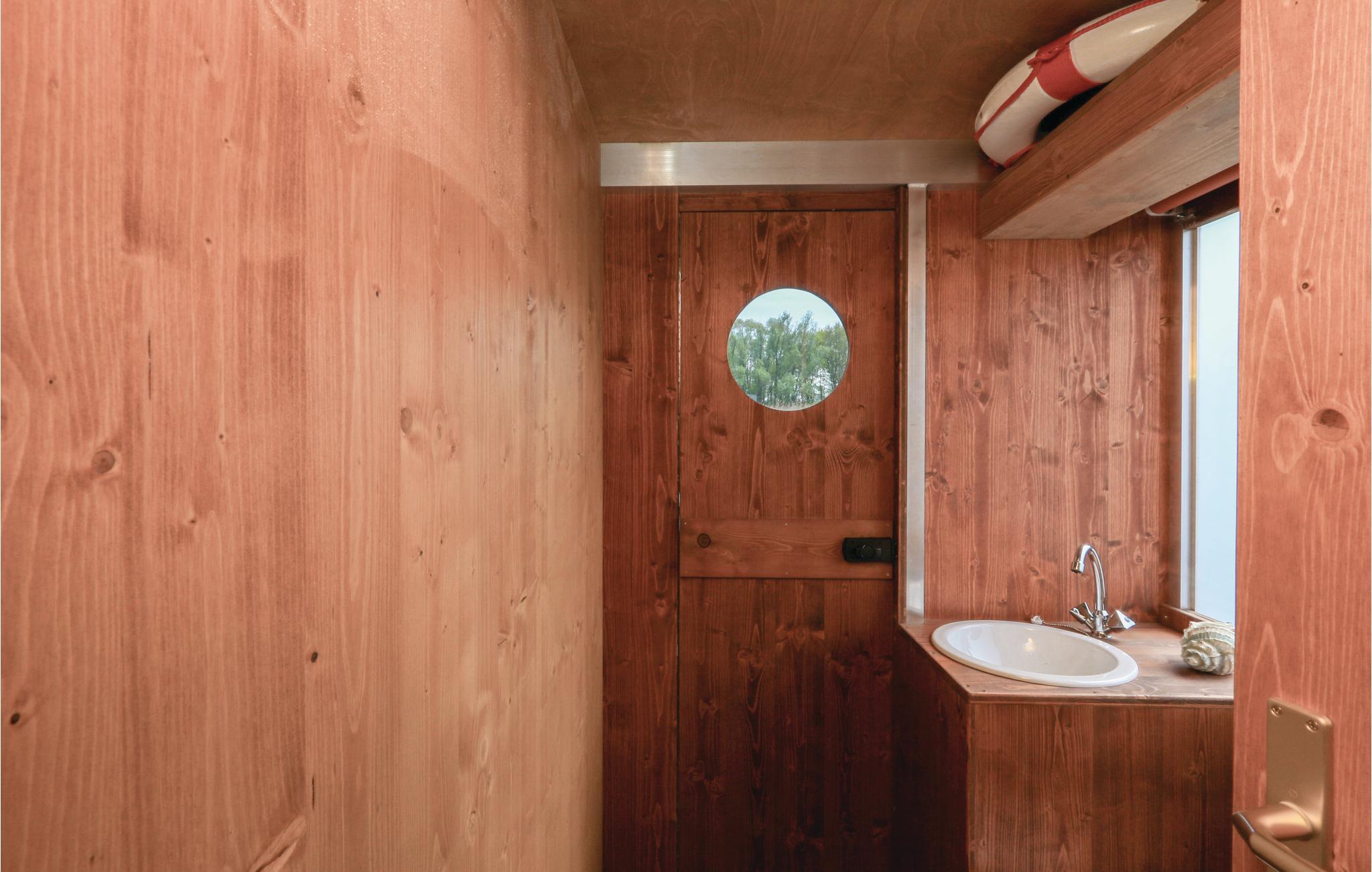Her er også et lille separat wc med håndvask. Brusebad udendørs med varmt vand (mod betaling skal der tankes vand i marinaen). Der er et passende antal svømmeveste og fendere i båden.