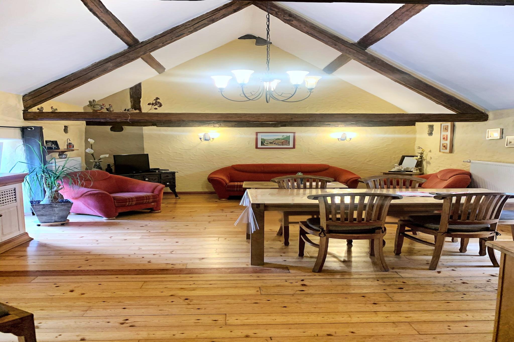 Dette charmerende feriehus med 2 soveværelser i Maring-Noviand er et hyggeligt tilflugtssted for en familie på fire og tilbyder et fredeligt tilflugtssted nær Mosel-floden. Huset er beliggende i en ombygget historisk mølle og har centralvarme, en møbleret have og en åben hems. Det kombinerer rustik charme med moderne bekvemmeligheder. Stuen/spisestuen inviterer dig til at tilbringe afslappende aftener, og det fuldt udstyrede køkken inviterer dig til at lave mad. For familier med børn skaber faciliteter såsom en barneseng, højstol og et legeområde i haven en særlig hyggelig atmosfære. Ejendommen er omgivet af natur og ligger kun 100 meter fra en skov, ideel til gåture og udforskning. Vinelskere vil sætte pris på nærheden til den berømte Mosel-vinregion, mens historieinteresserede kan besøge Bernkastel-Kues, hjemsted for Landshut Slotsruiner og en middelalderlig markedsplads. Bymidten og et supermarked ligger 600 meter væk, og restauranter ligger kun 1 km fra ejendommen. Dette giver dig mulighed for at nyde komfort uden at ofre fred og ro. Uanset om du nipper til vin i haven, svømmer i Mosel eller udforsker de nærliggende vinmarker og slotte, tilbyder dette hus en uforglemmelig oplevelse på landet. Højdepunkter: Alle forbrugsbaserede energiomkostninger Wi-Fi