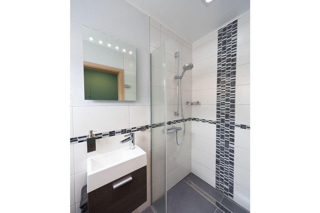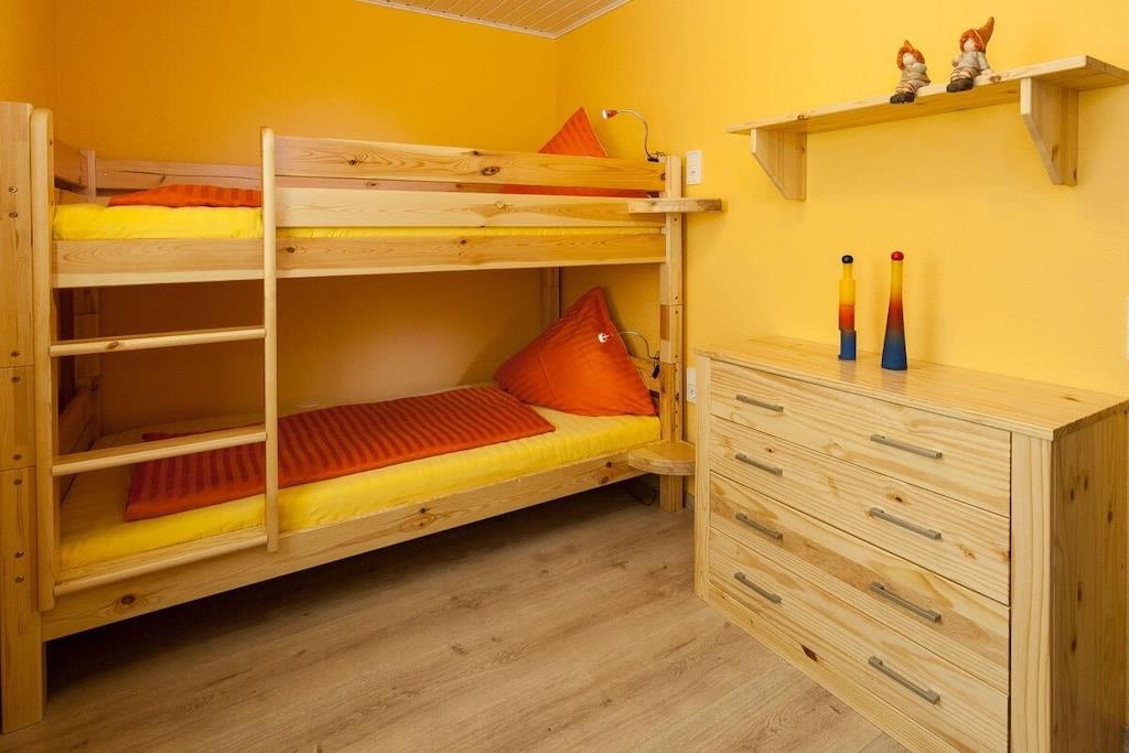 Stueetage: (Køkken(spisebord, kogeplade, brødrister, komfur, kaffemaskine, ovn, mikrobølgeovn, opvaskemaskine , køleskab), stue / spisestue(Fjernsyn, spisebord, kakkelovn, DVD-afspiller, radio, CD-afspiller, barnestol), soveværelse(dobbeltseng, køjeseng, Fjernsyn, radio, Puslepude, legetøj), badeværelse(håndvask, toilet, føntørrer, Håndklæder inkl.), pulterkammer(håndvask, strygebræt, strygejern))