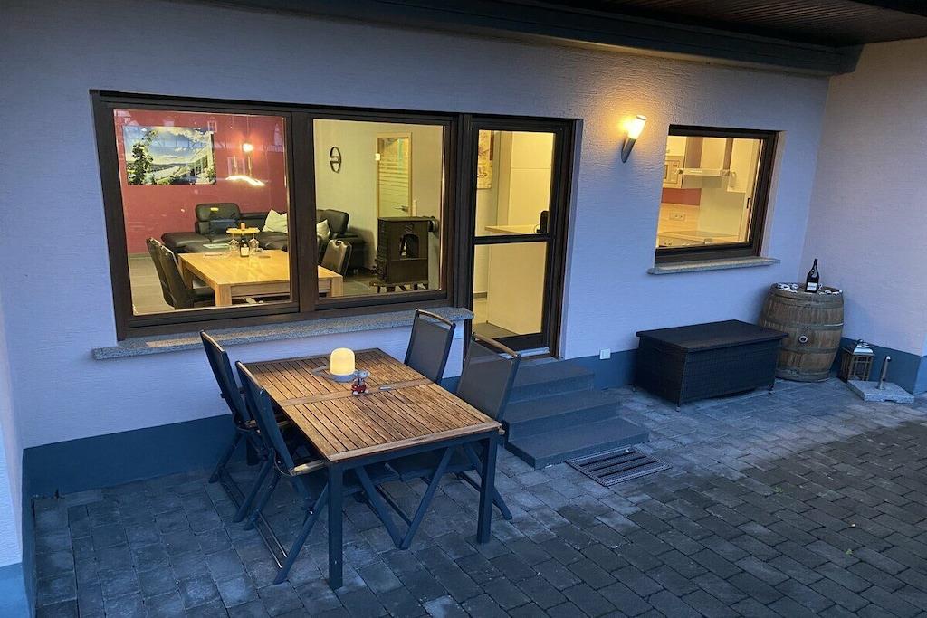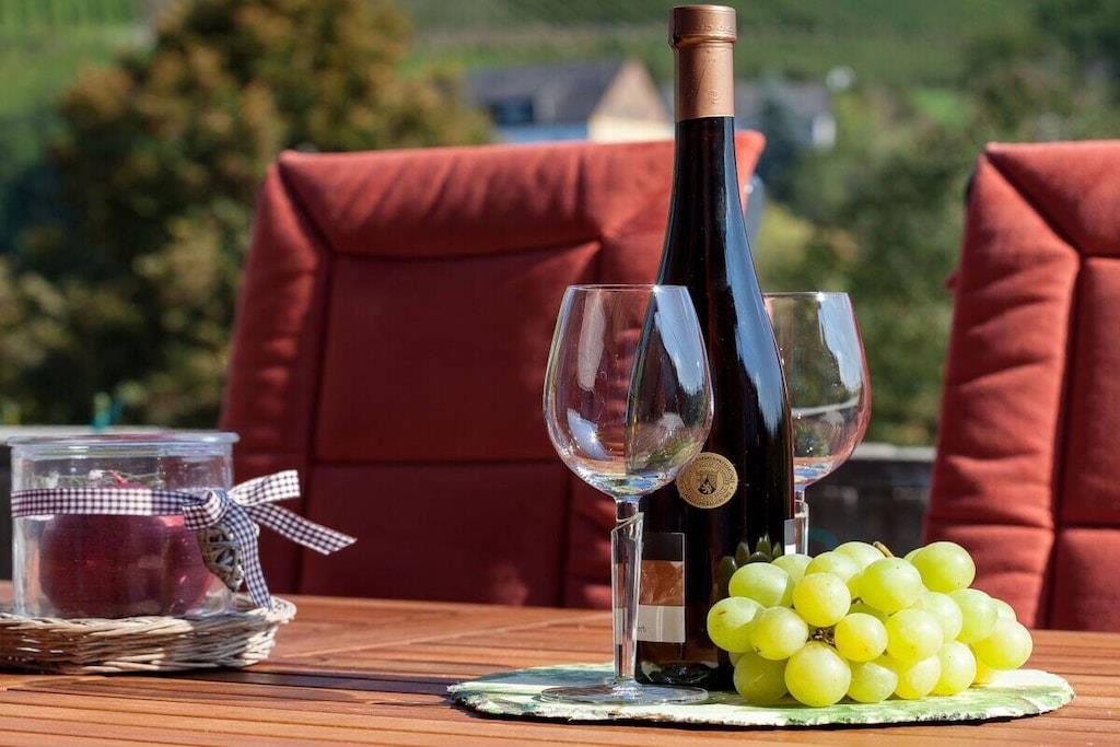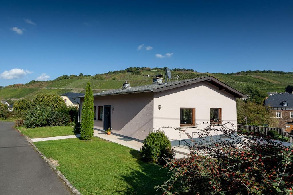 Feriehuset har plads nok til 4 personer (2 voksne og 2 børn) og har 1 køkken, 1 stue-spisestue, 1 soveværelse, 1 badeværelse, 1 gæstetoilet med bruser og 1 børneværelse. Nyd den vidunderlige udsigt over vinmarkerne fra terrassen med et glas vin.