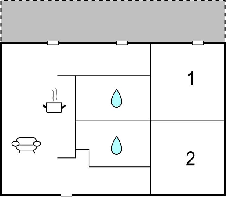 Opholdsstue/køkken - 2 Sovepladser. (Sofa, madras eller lignende).