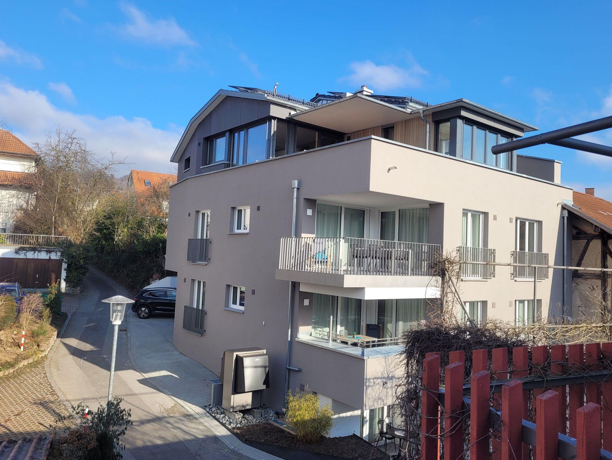Das moderne, im Herbst 2024 neu eröffnete, Apartmenthaus befindet sich zentral im Herzen der historischen Altstadt von Markdorf. In einer ruhigen Seitenstraße, direkt in der Fußgängerzone der Hauptstraße, bietet das Apartmenthaus 5 exklusive Innenstadt-Apartments mit 1-4 Zimmern.