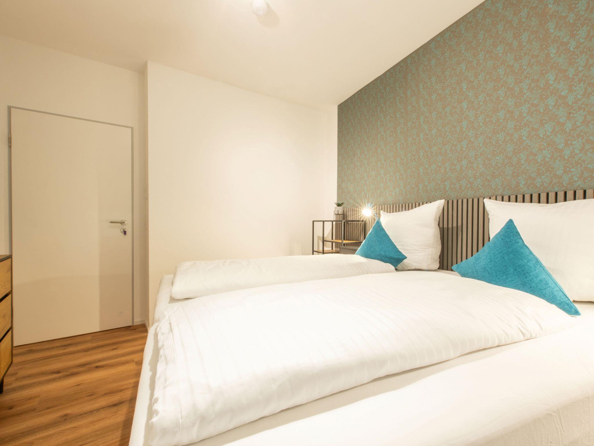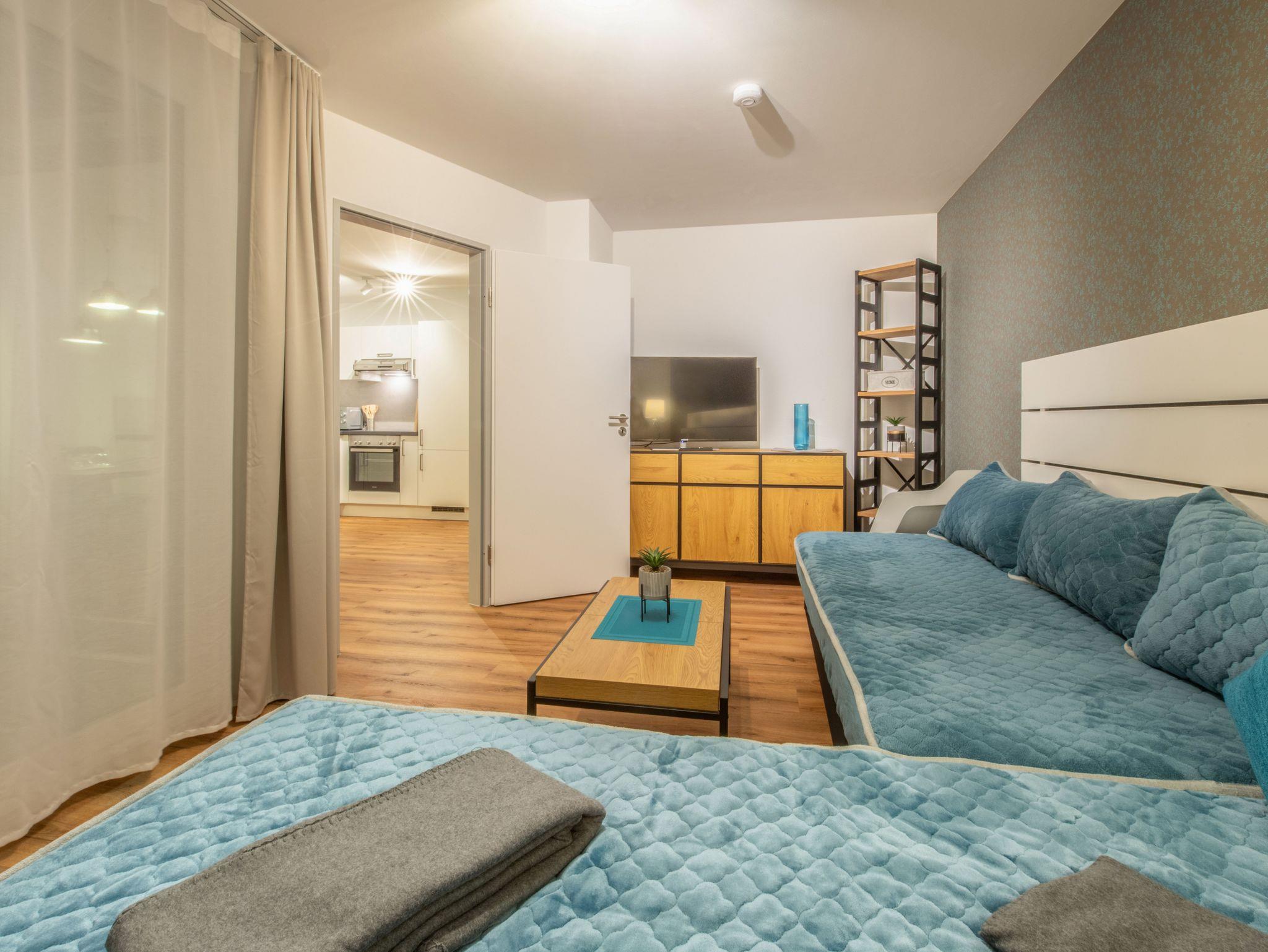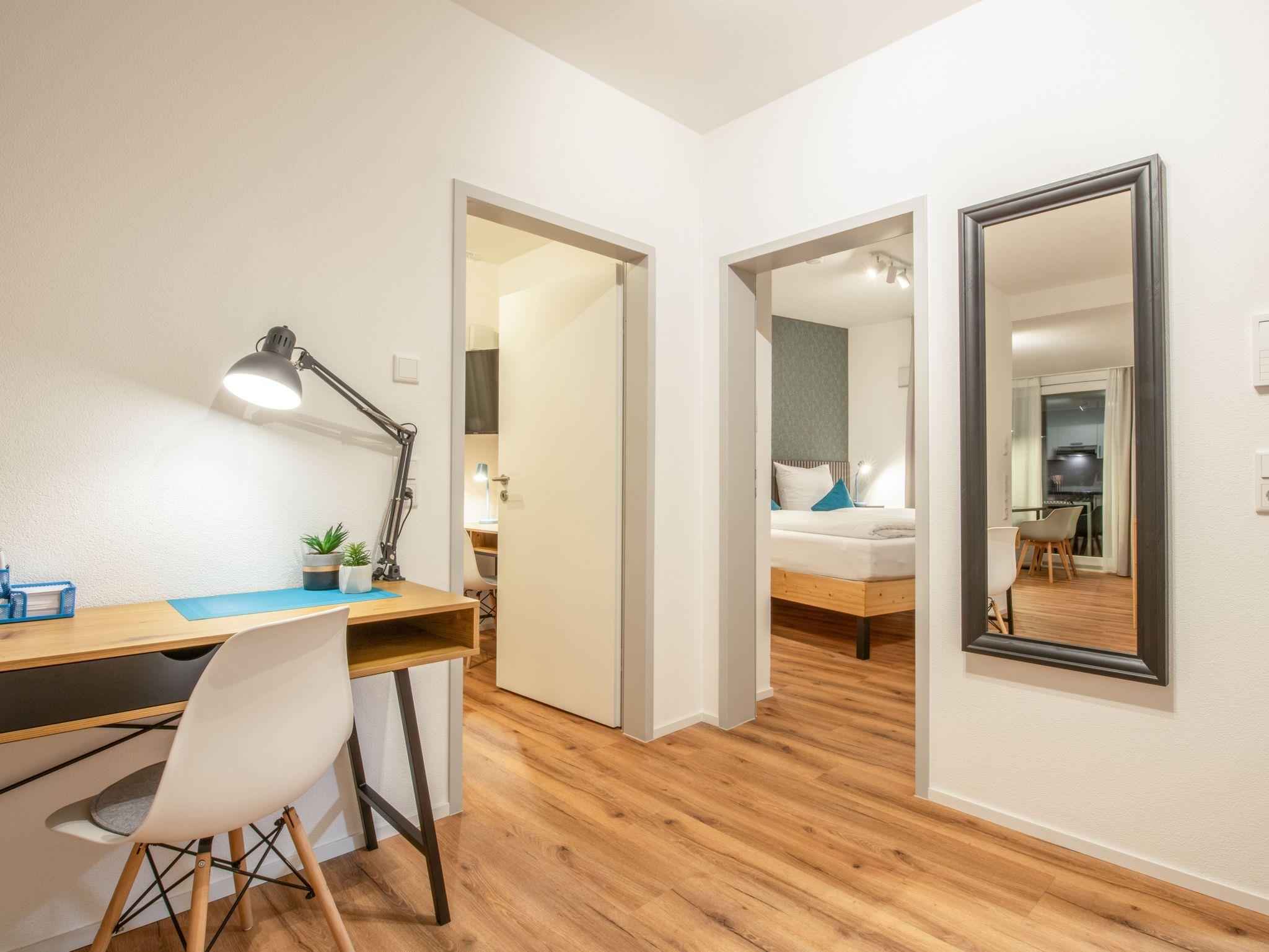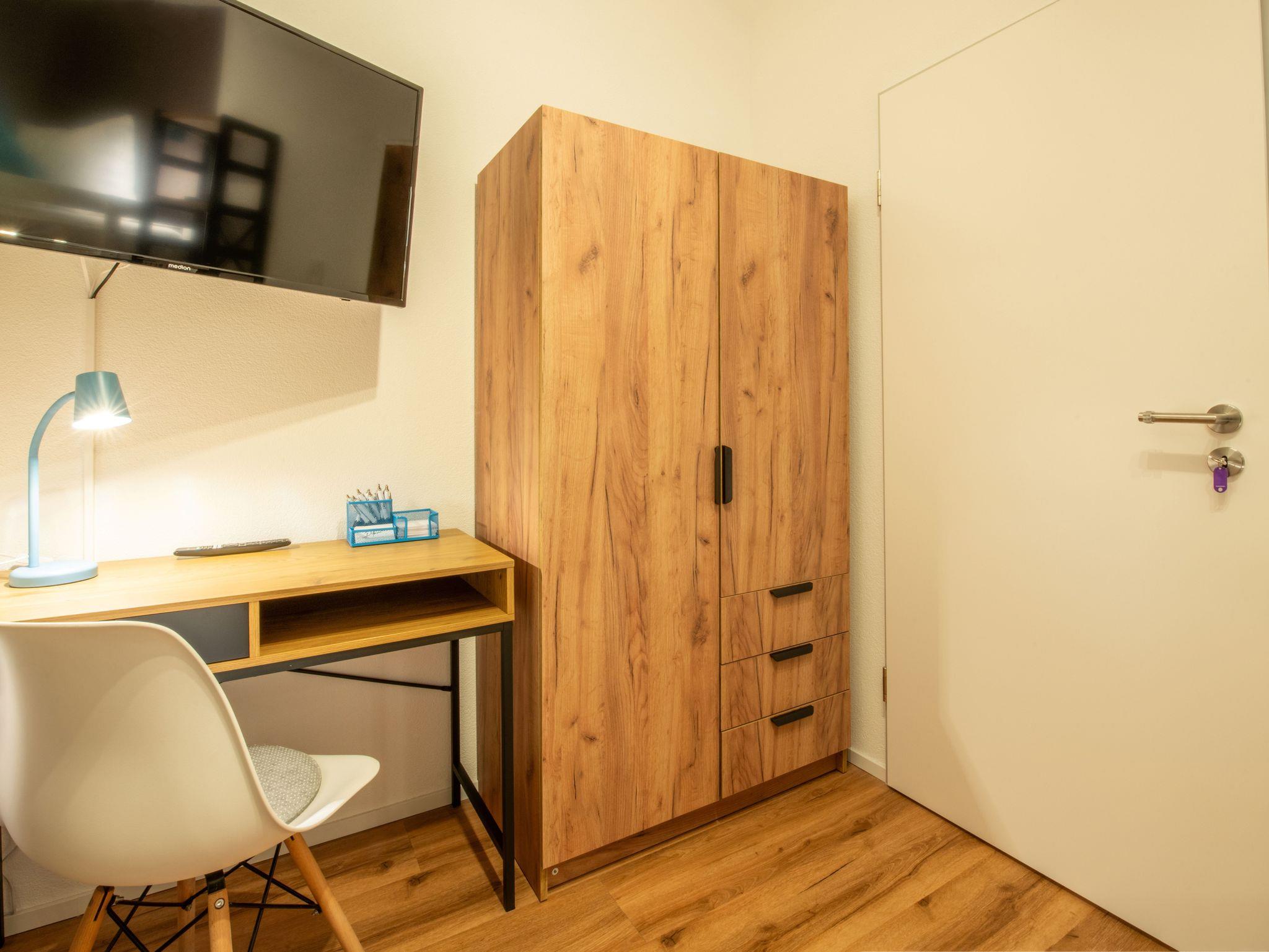 Alle Apartments sind mit komfortablen Doppel- und/oder Einzelbetten, Schreibtisch, W-LAN, und LAN-Verbindungen, sowie Flachbildfernsehen eingerichtet.