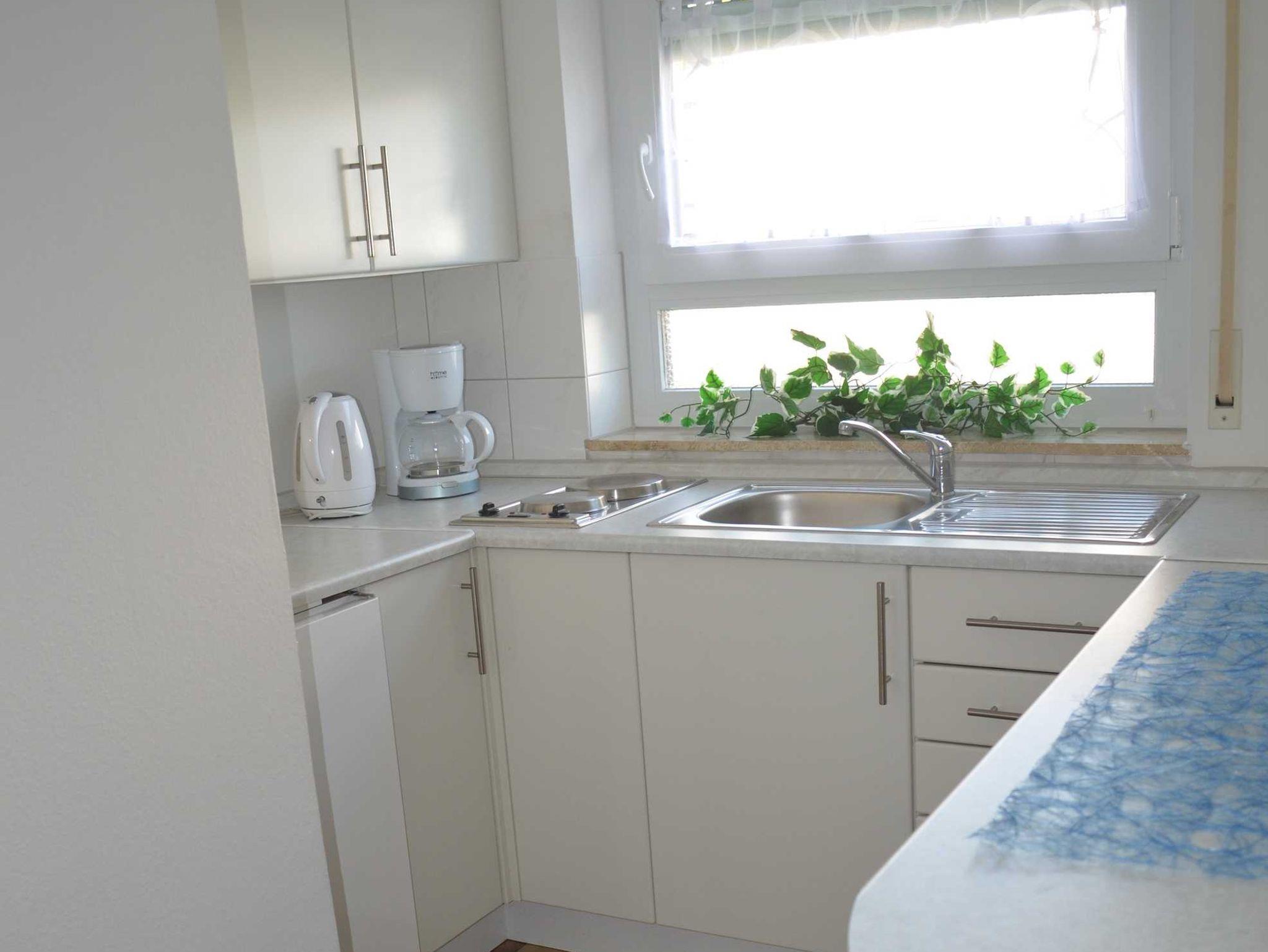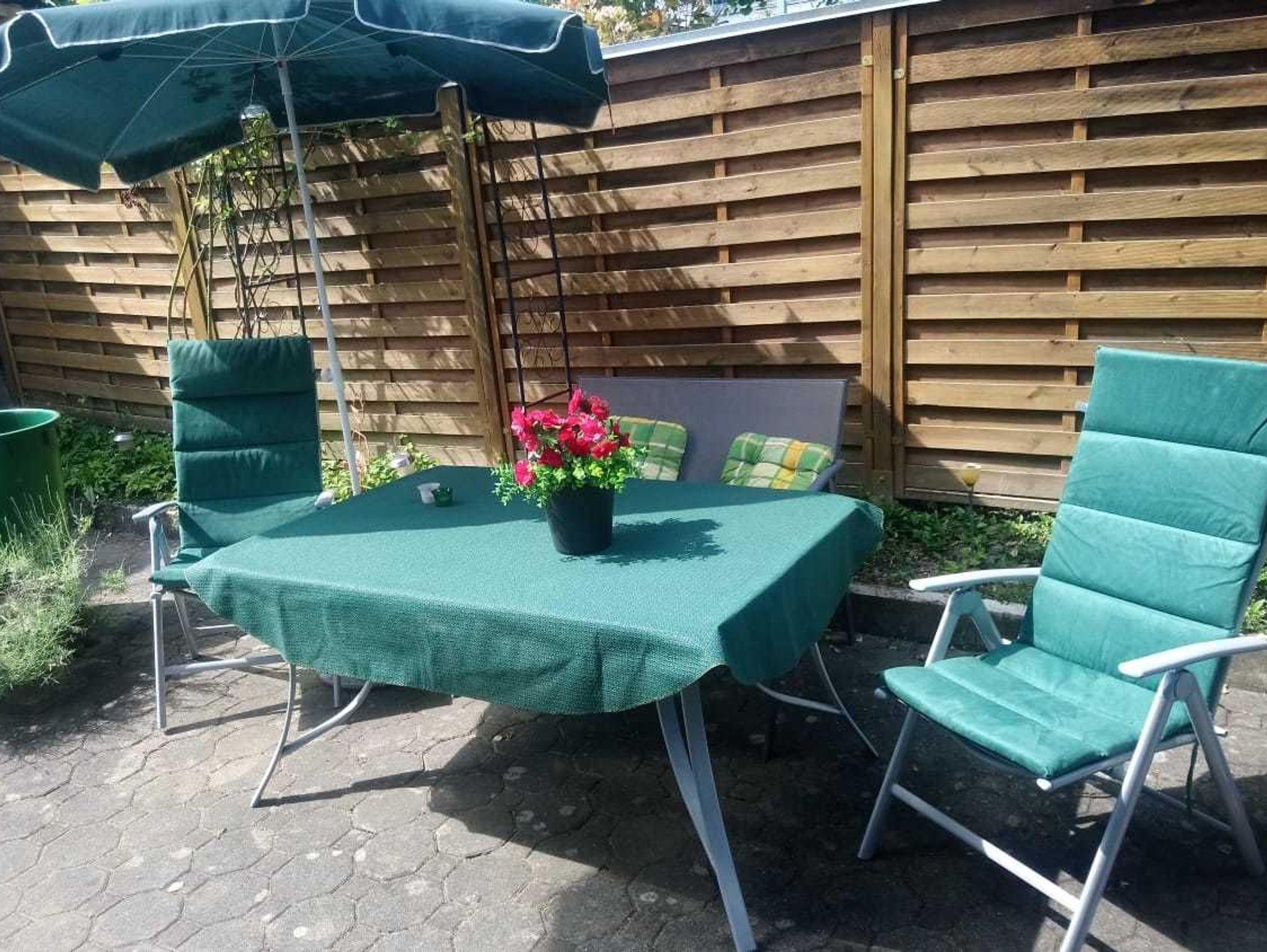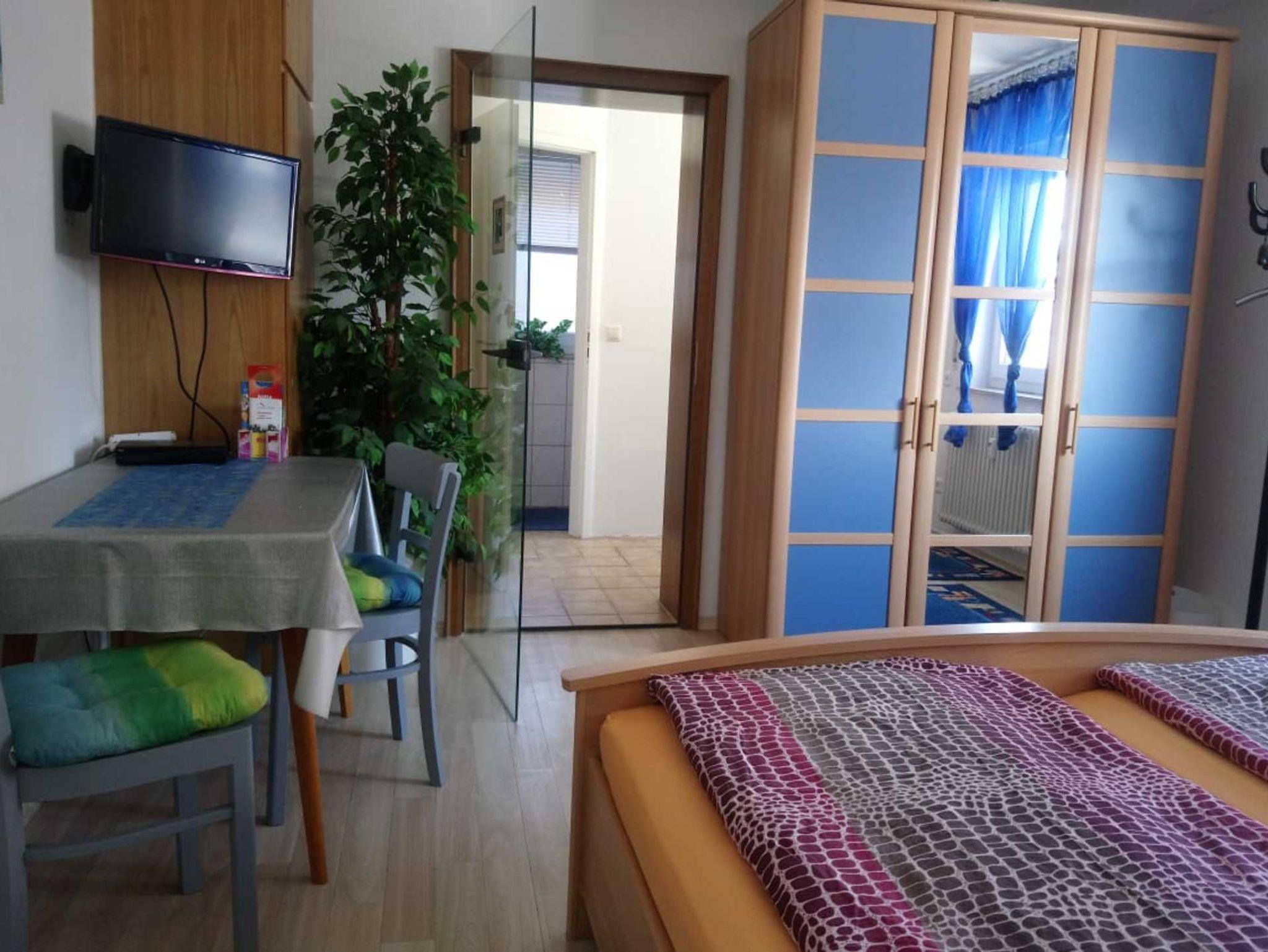 Kleines, aber liebevoll eingerichtetes 1-Raum-Appartement mit Schlafzimmer, separater Küche und Badezimmer mit Dusche und WC. Freisitz im Garten.