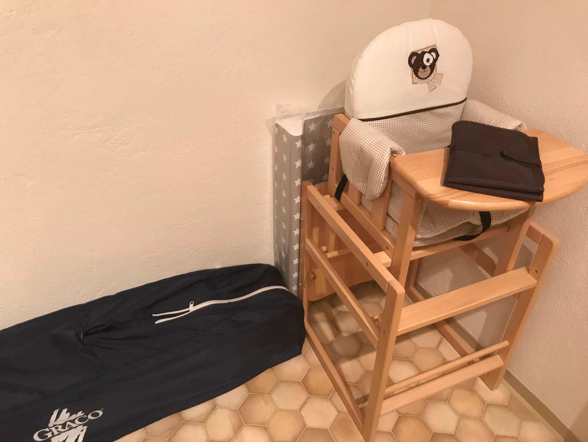 Kleinkindreisebett sowie Hochstuhl sind verfügbar.