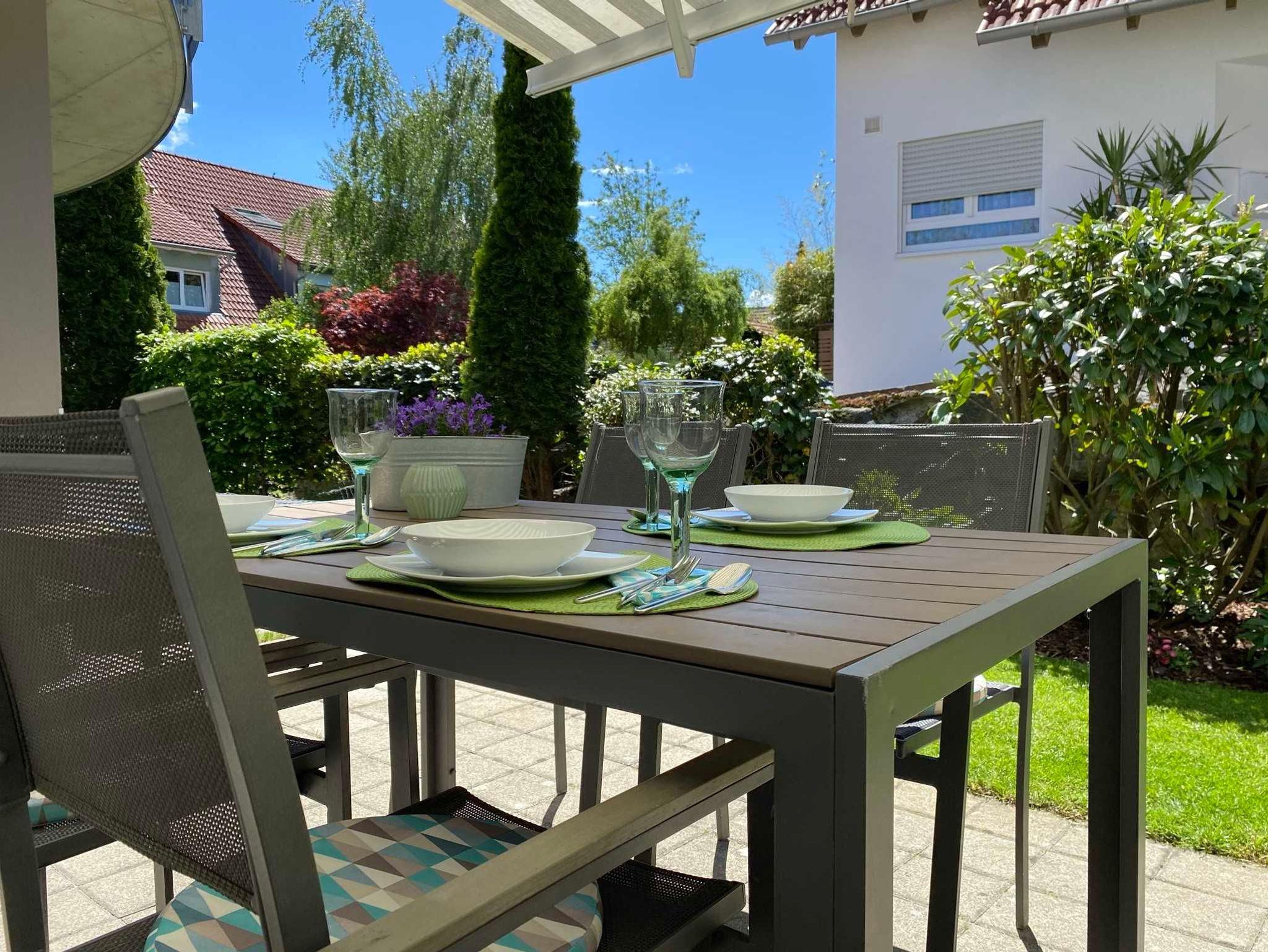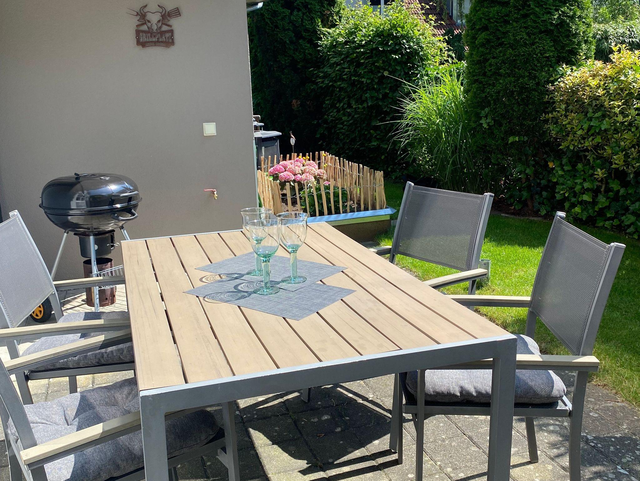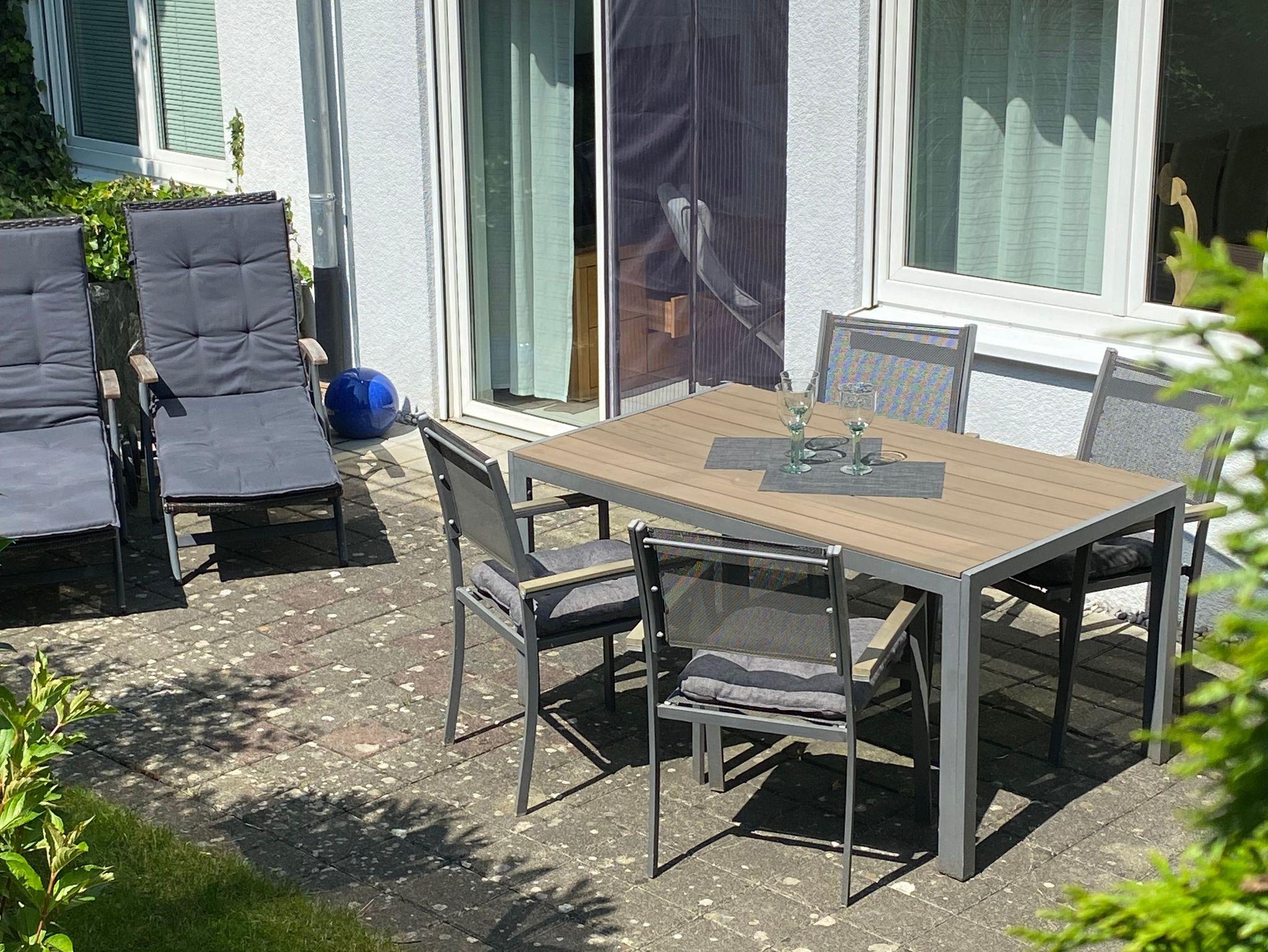 Die Whg liegt im Erdgeschoss mit einer privaten, zum Entspannen einladenden Terrasse, inkl. Gartenmöbeln und Holzkohle Grill.