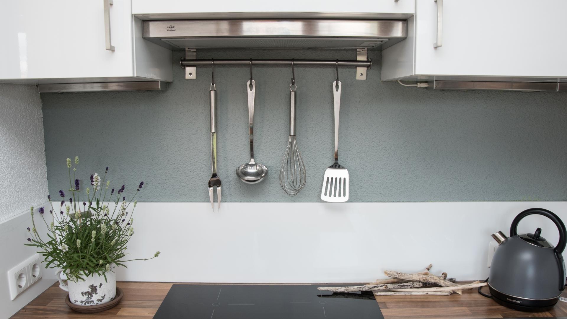 • Einbauküche mit Ceranfeld, Kühlschrank mit Gefrier-Einheit, Spülmaschine, Wasser- und Eierkocher, Wok, Kaffeemaschine und Toaster