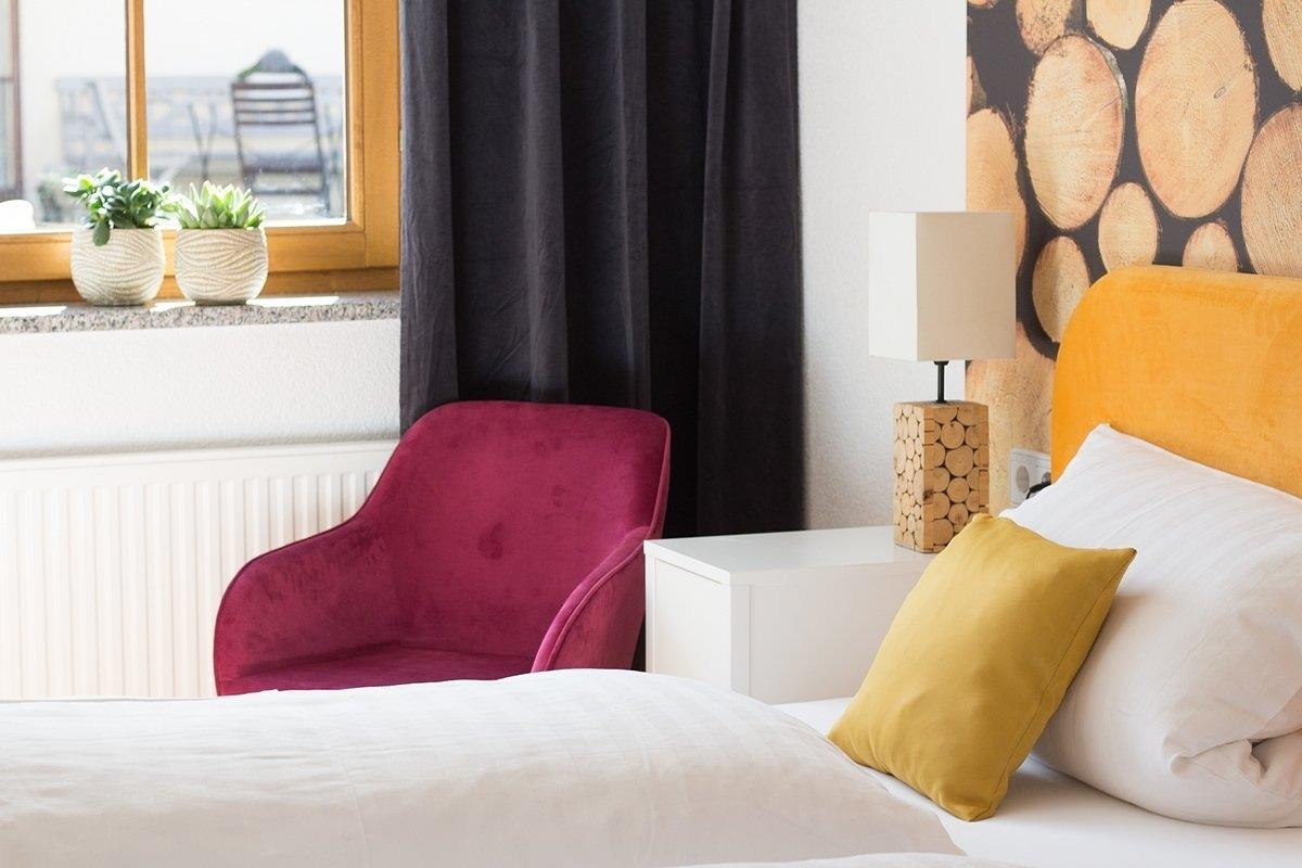 • Ausblick vorderes Schlafzimmer: auf den Vorderhof, Blick zum Brennereihäusle