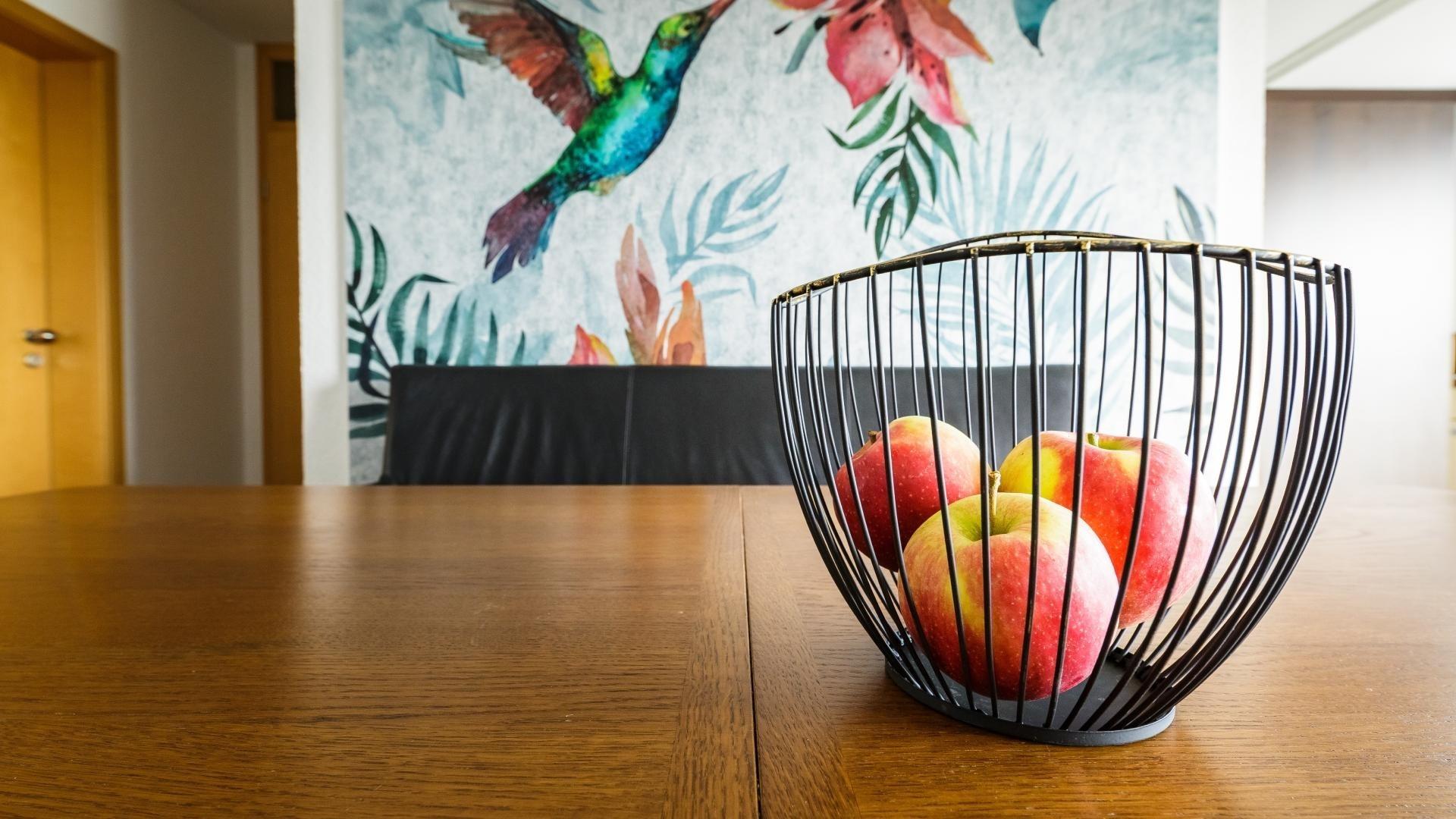 • Ausblick: herrlicher Blick auf die Obstanlagen, bei Föhn Alpensicht