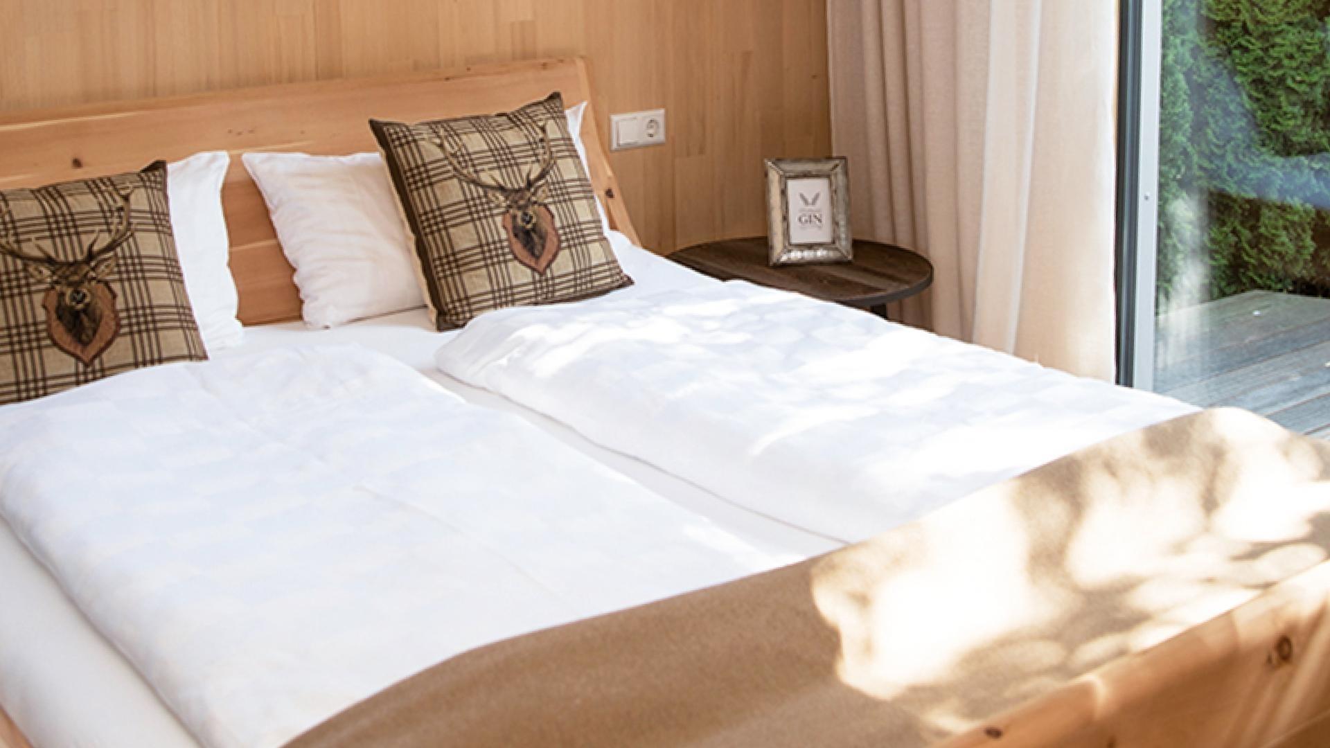 • Getrenntes Schlafzimmer mit Zirbelholzbett (Zusatzbett möglich)