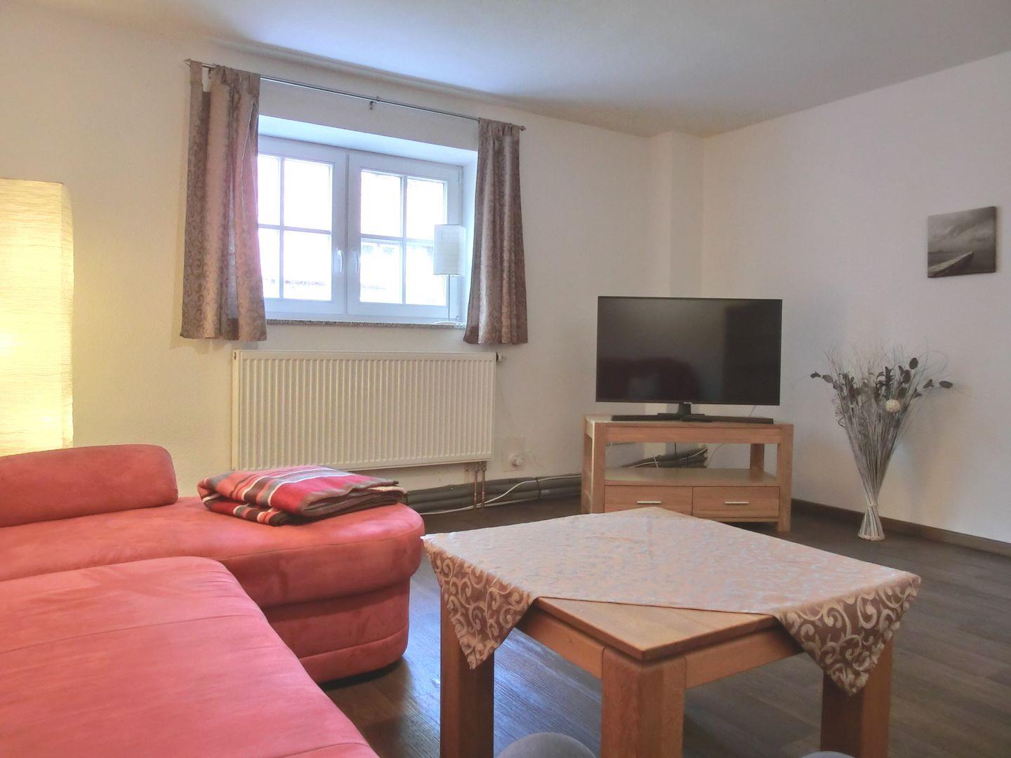 • Wohnzimmer mit gemütlichem Sitzbereich und Sat-TV