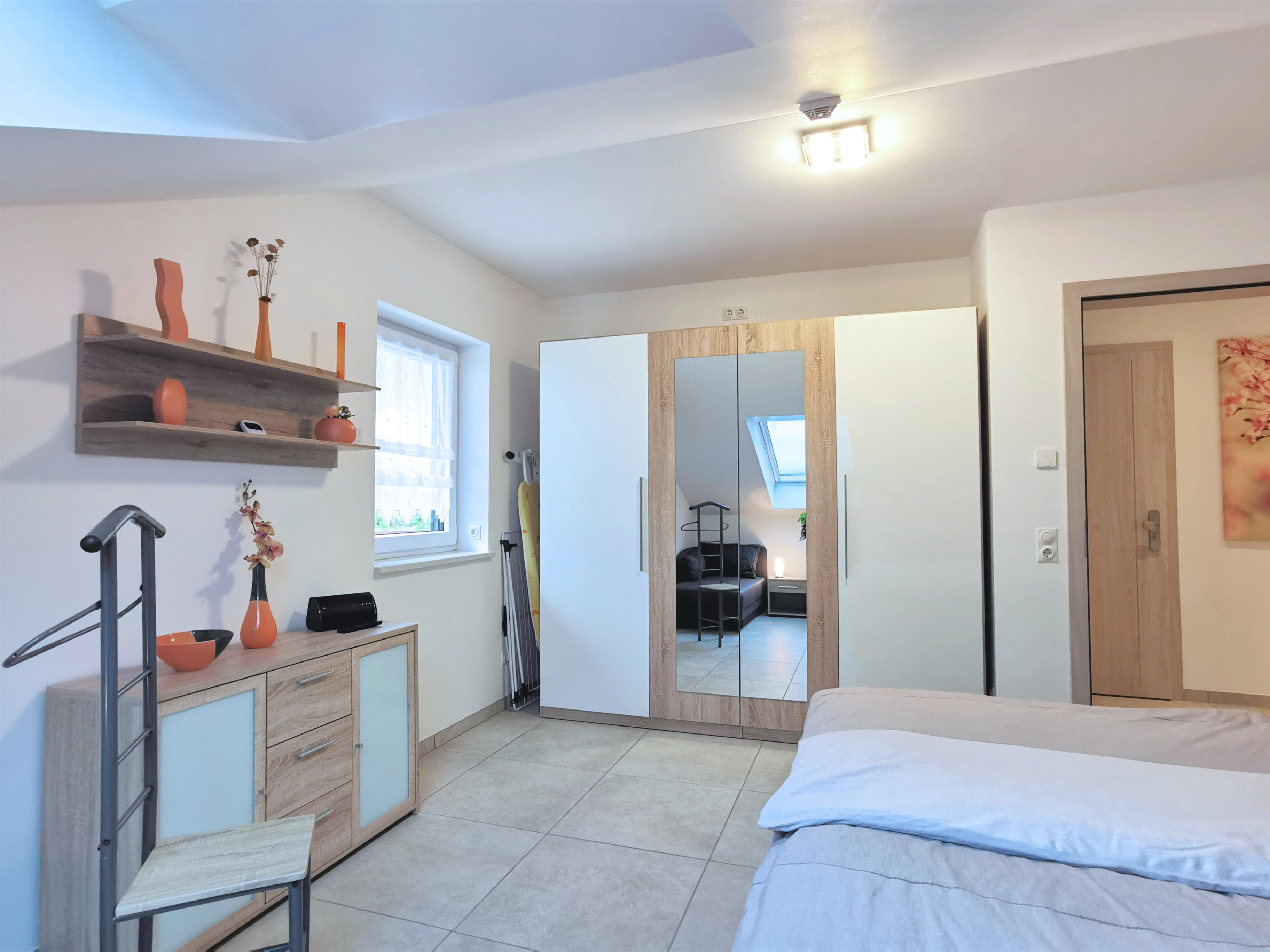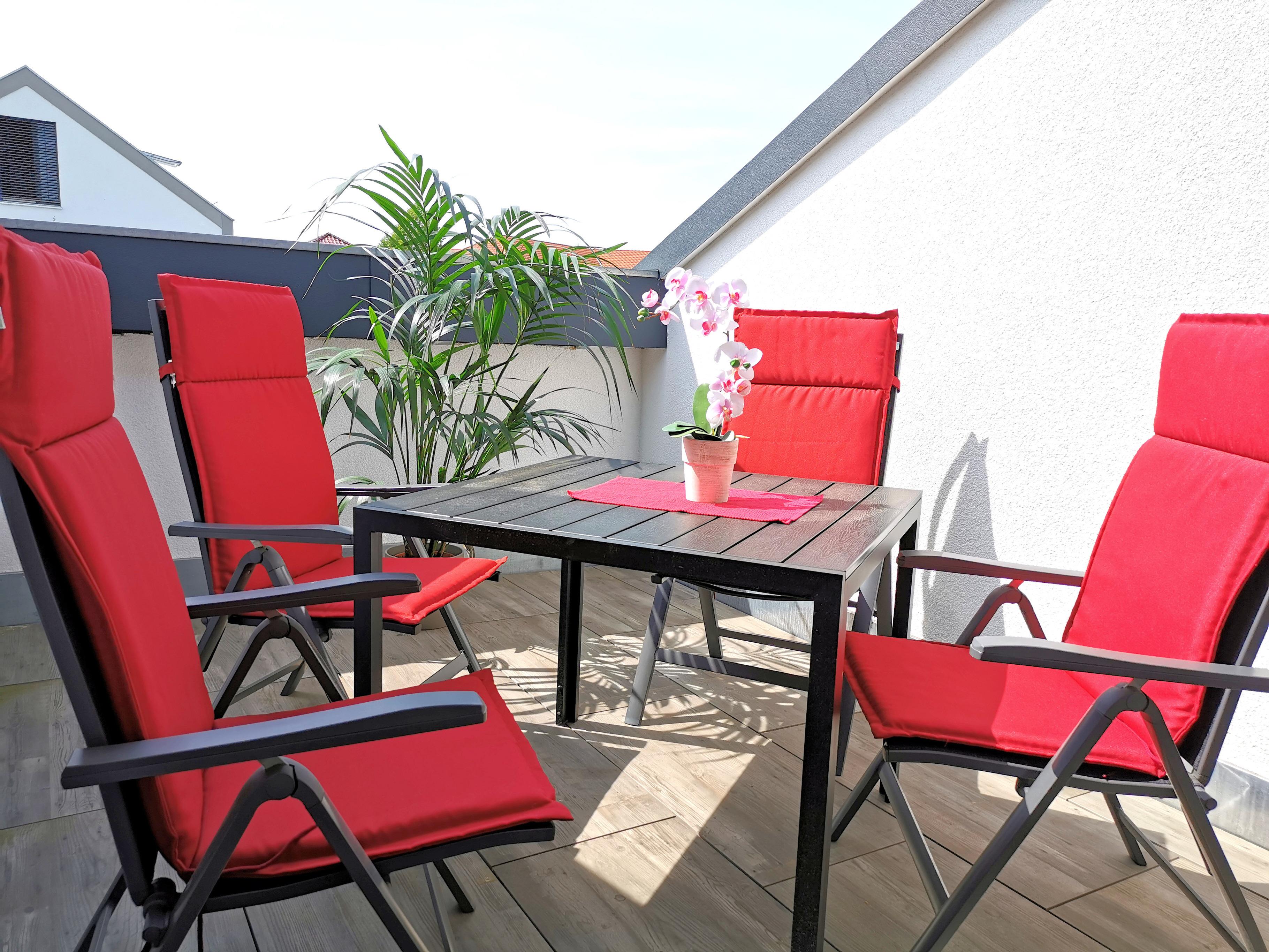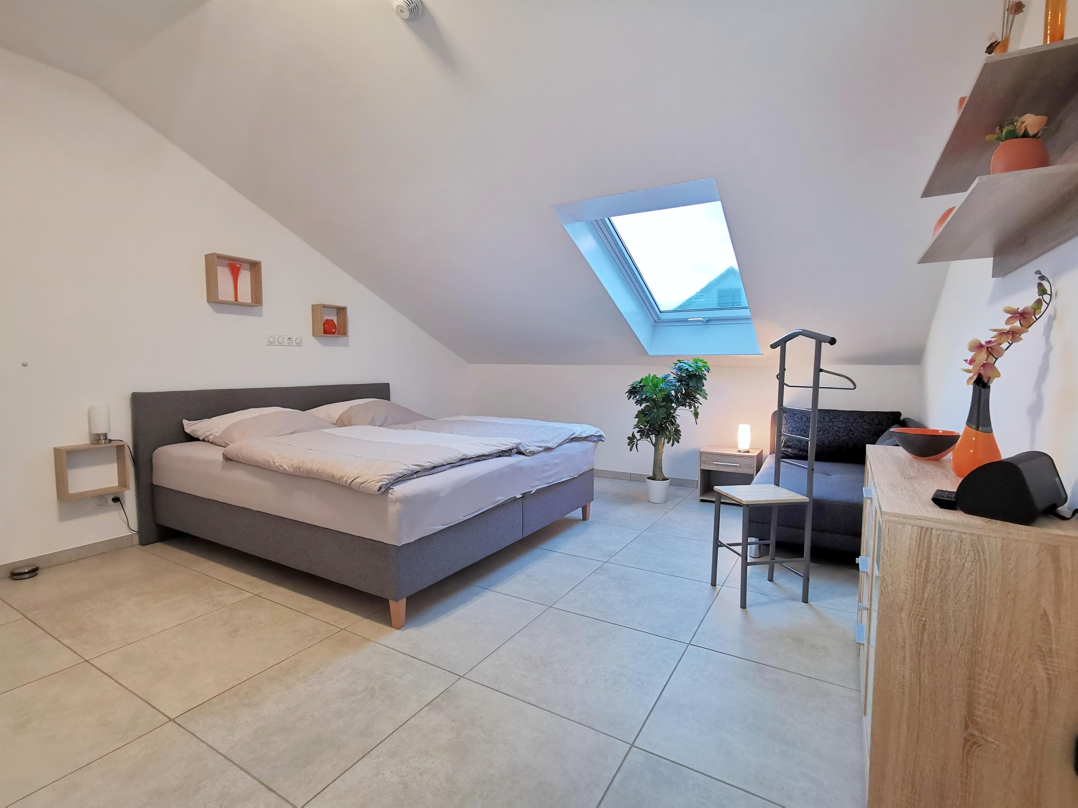 Die Ferienwohnung mit gehobener Ausstattung ist ideal für Paare, Familien bis 3 Erwachsene + 1 Kleinkind bis 3 Jahre, aber auch Einzelreisende. Die Ferienwohnung liegt in sehr ruhiger Wohnlage (EFH-Gebiet) mit umfassenden Einkaufsmöglichkeiten in nur 300 m Entfernung. Sie bietet u.a. blickgeschützte Dachterrasse und außergewöhnliche "Schlechtwetterausstattung" (u.a. Sauna, Spielesammlung, 3D-Home-Cinema)