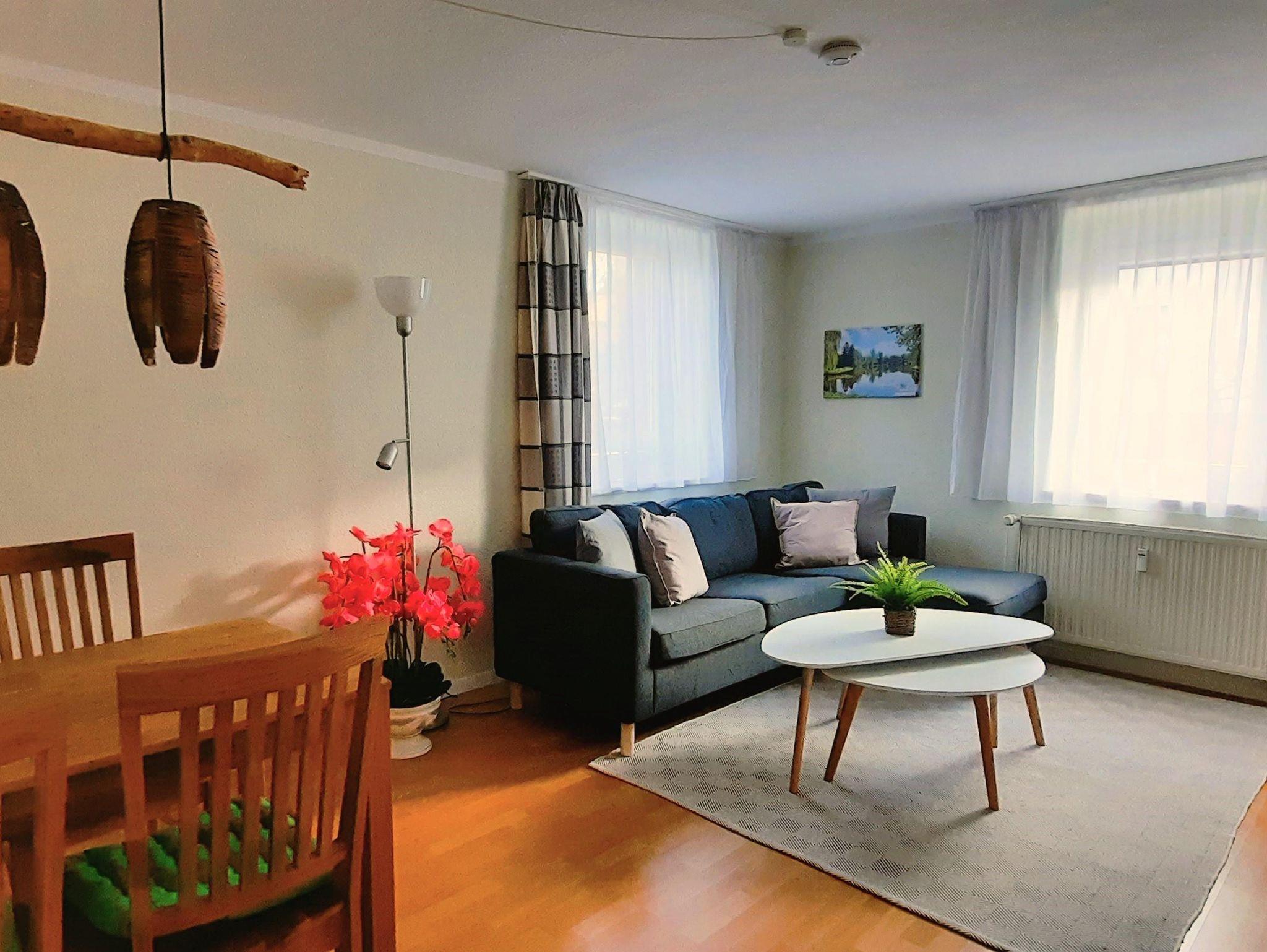 Wohnzimmer mit Sitzecke, TV, Esstisch