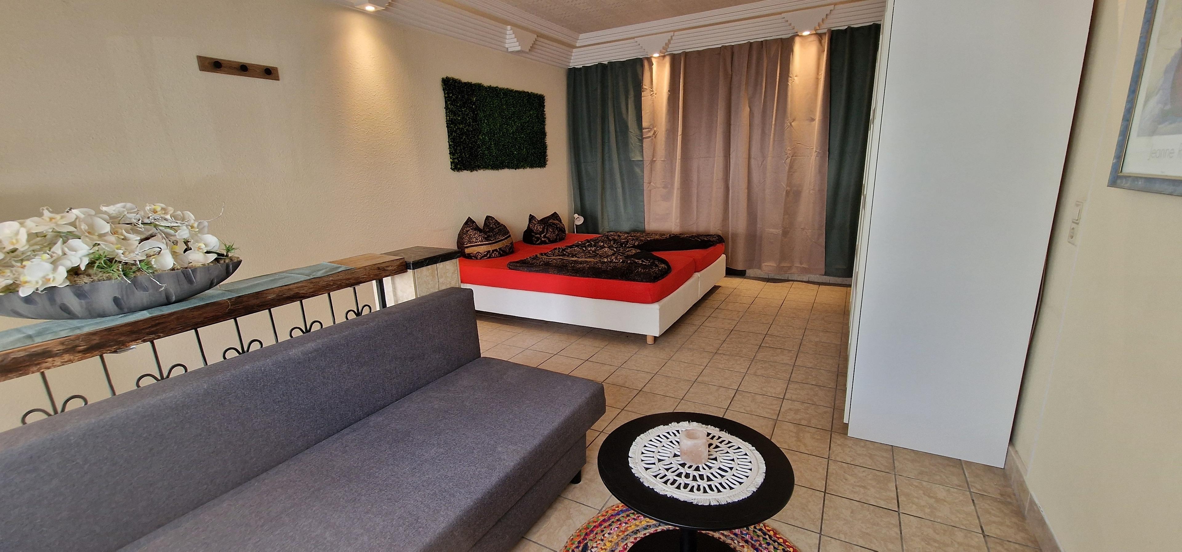 Unser Apartment ist modern und liebevoll eingerichtet, um Ihnen den bestmöglichen Komfort zu bieten. Es verfügt über ein geräumiges Schlafzimmer mit einem bequemen Doppelbett und ausreichend Stauraum für Ihre Kleidung und persönlichen Gegenstände. Das Wohnzimmer ist mit einem gemütlichen Sofa ausgestattet, das sich bei Bedarf in ein zusätzliches Bett verwandeln lässt. Ein Flachbildfernseher und kostenfreies WLAN sorgen für Ihre Unterhaltung.