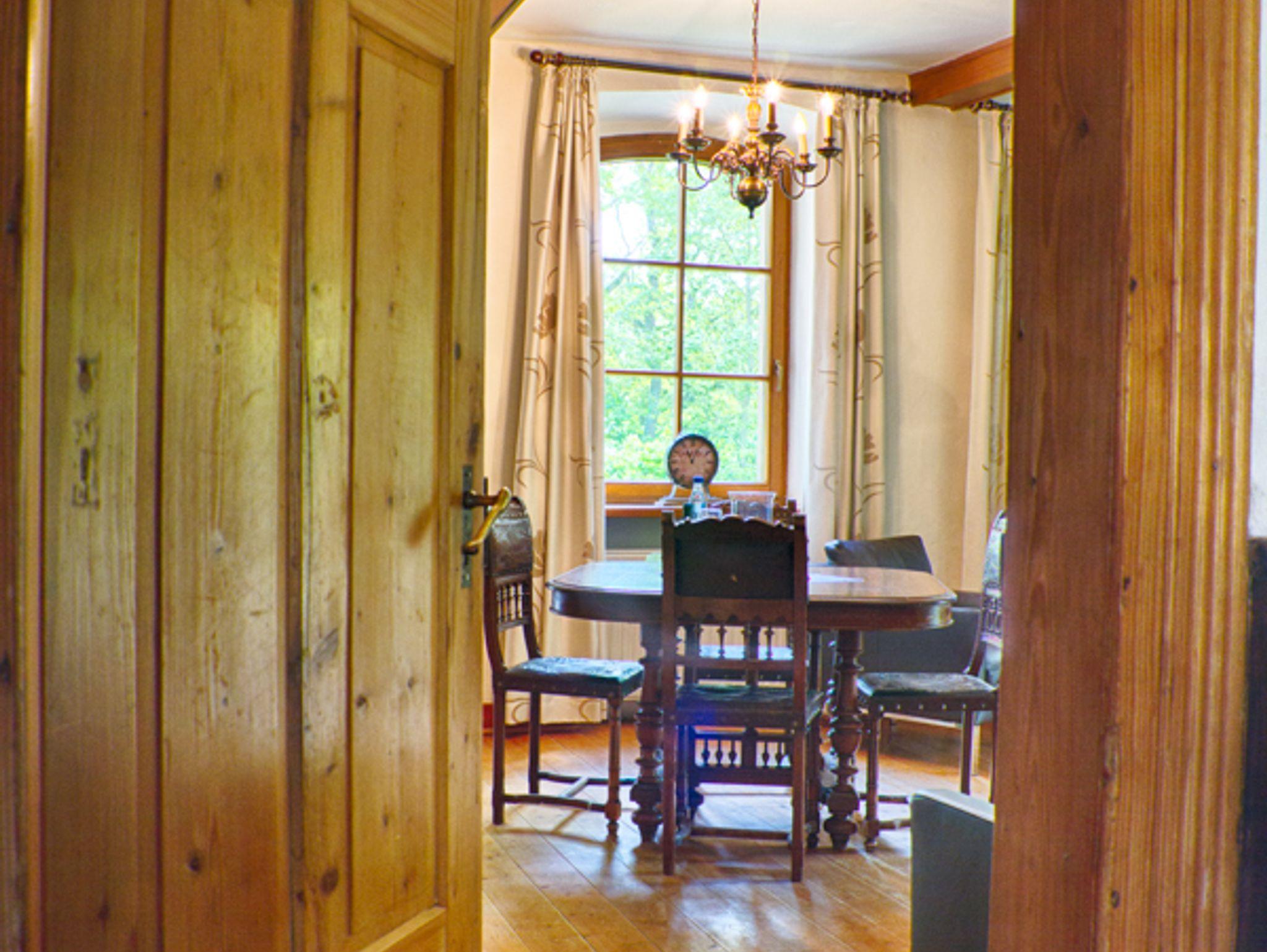 Die Ferienwohnung „Schlossgarten“ bietet auf 65 m² Platz für bis zu 4 Personen und befindet sich im Erdgeschoss des Haupthauses. Die Wohnung verfügt über zwei Schlafräume, von denen einer mit einem Doppelbett und einer mit einem Etagenbett ausgestattet ist. Die Küchenzeile mit Backofen, Geschirrspüler, Kaffee- und Teekocher, Kühlschrank, Mikrowelle und Toaster lässt keine Wünsche offen. Das Badezimmer rundet das Gesamtbild der Wohnung ab. Das WLAN und den Parkplatz können Sie gerne kostenfrei nutzen.