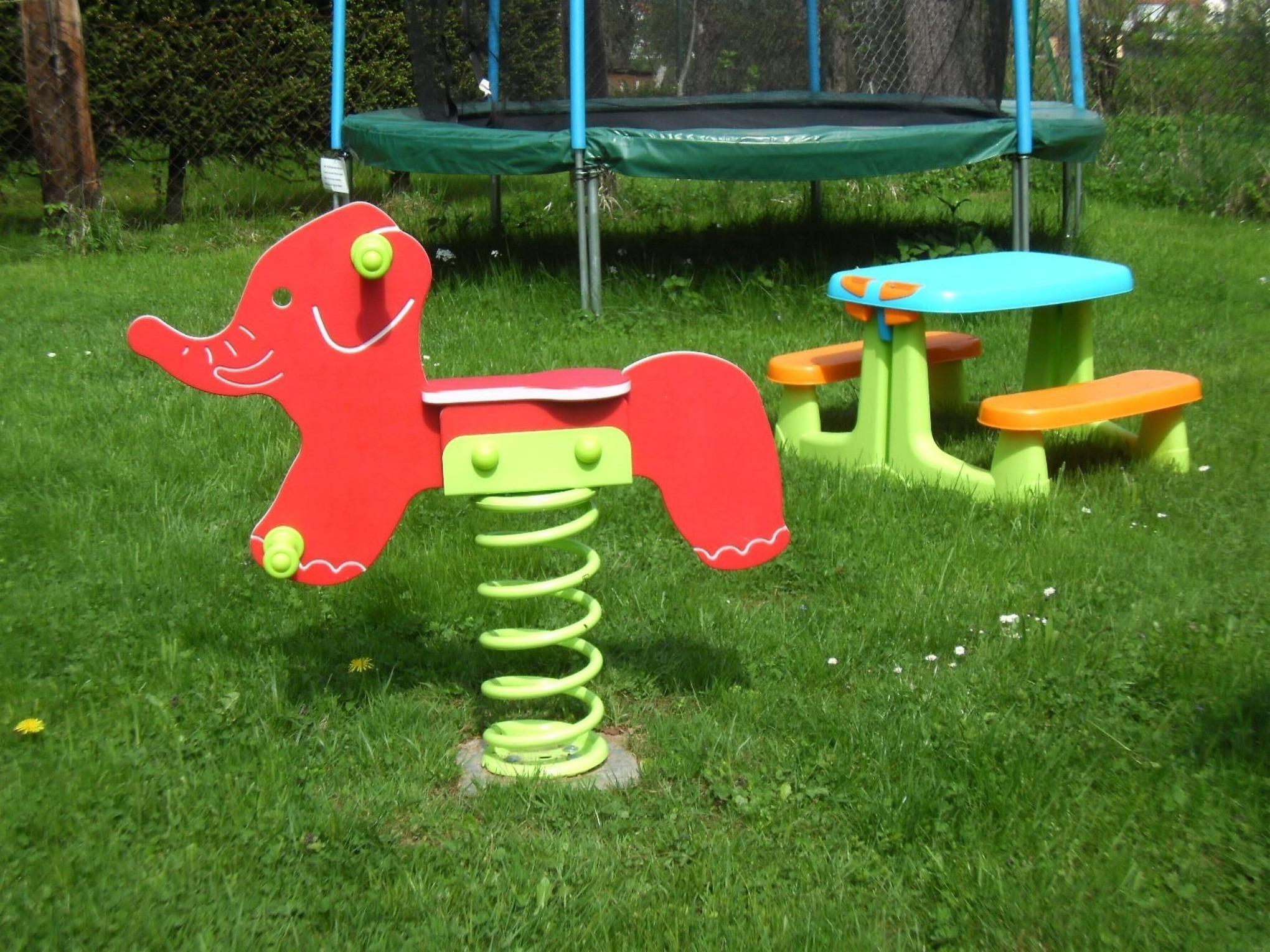Vor Ihrem Ferienhaus ist eine große Terrasse mit Gartenmöbel und Grill. Im Anschluß der Große Garten mit Spielhütte, Tischtennisplatte, Tischfußball, Großtrampolin und viele Spielgeräte. Der Parkplatz befindet sich direkt vor der Anlage. Ihre mitgebrachten Fahrräder können Sie in einem abschließbaren Fahrradraum unterbringen. Das Grundstück ist komplett eingezäunt.