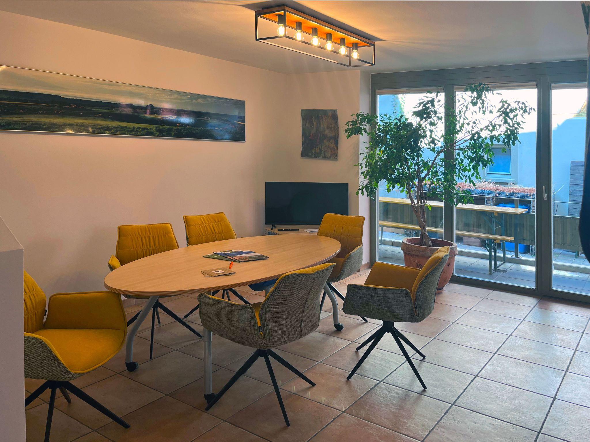 The CITY HOUSE offers an absolutely top-equipped ambience with a large SIEMATIC eat-in kitchen, XXXL flat-screen TV in the living room, TV and office desk in the rooms, comfortable queen-size beds 140 cm wide, which can also sleep 2 people. Terracotta floors on the ground floor and solid wood parquet in the living rooms. A spacious bathroom with bath and shower. Naturally, all linen is provided, from bed linen to shower towels, and our housekeeping service cleans daily. The kitchen is fully equipped, there is a washing and drying station in the neighbouring building, fast Wi-Fi, all necessary connections from USB to laptop socket in the office desk, 2 lockable fridge compartments for each room, additional guest WC, balcony on the upper floor, terrace on the ground floor and an inner courtyard with electric charging station for cars and bicycles, ideal as team accommodation for 3-4 employees for longer stays on site at preferential conditions for monthly or quarterly bookings. Also ideal for family trips and bicycle groups, as the couches in the living room also have a sleeping function. This means that up to 8 people can stay overnight on request. Minimum stay is 33 days, shorter stays are possible on request with a surcharge. The room price is valid for occupancy as a single room for 3 persons.