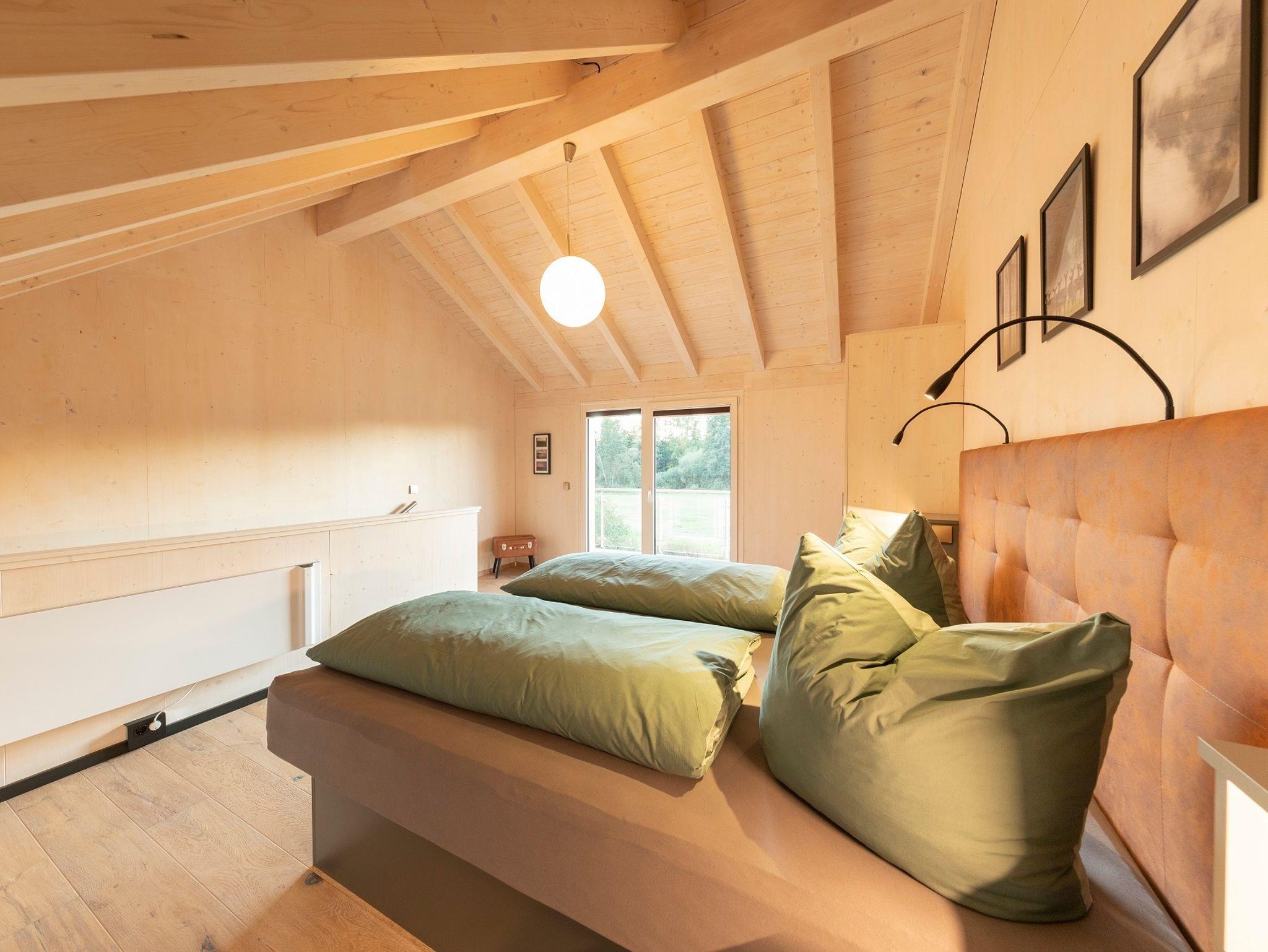 Das Obergeschoss beherbergt das Schlafzimmer mit Wasserbett auf Boxspringbett-Höhe und eigenem Balkon – perfekt für erholsamen Schlaf und entspannte Morgenstunden. Alle Häuser verfügen selbstverständlich über WLAN und TV mit inkludiertem Entertainment-Paket.