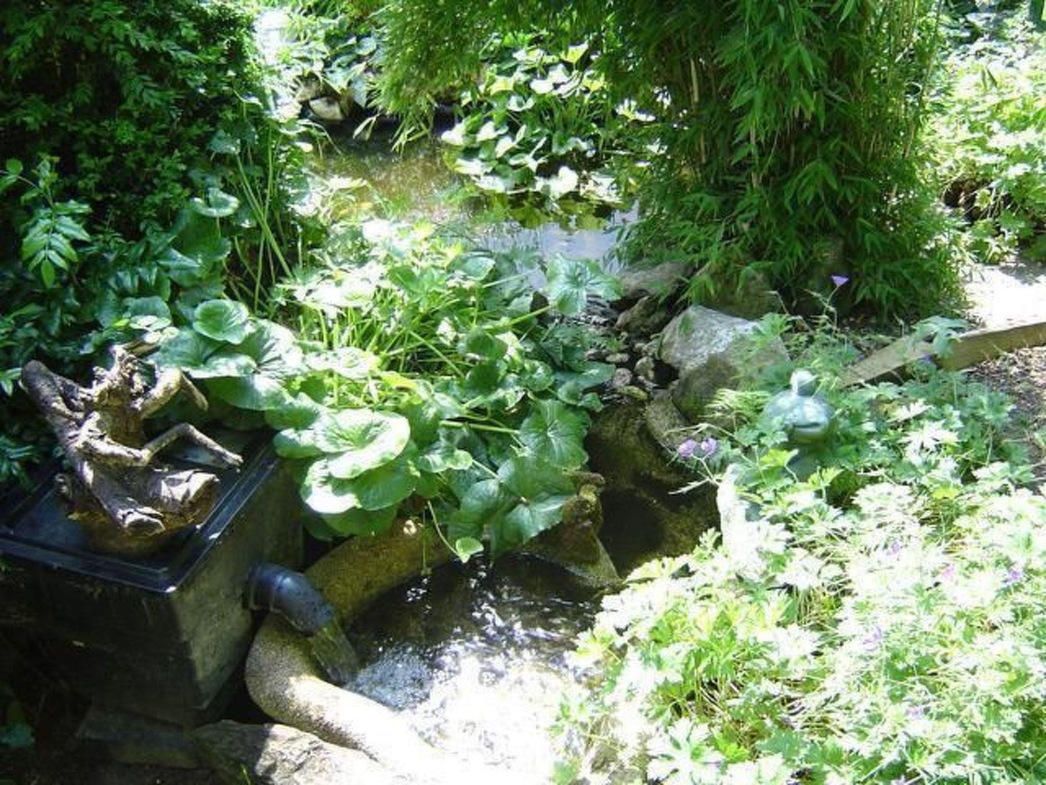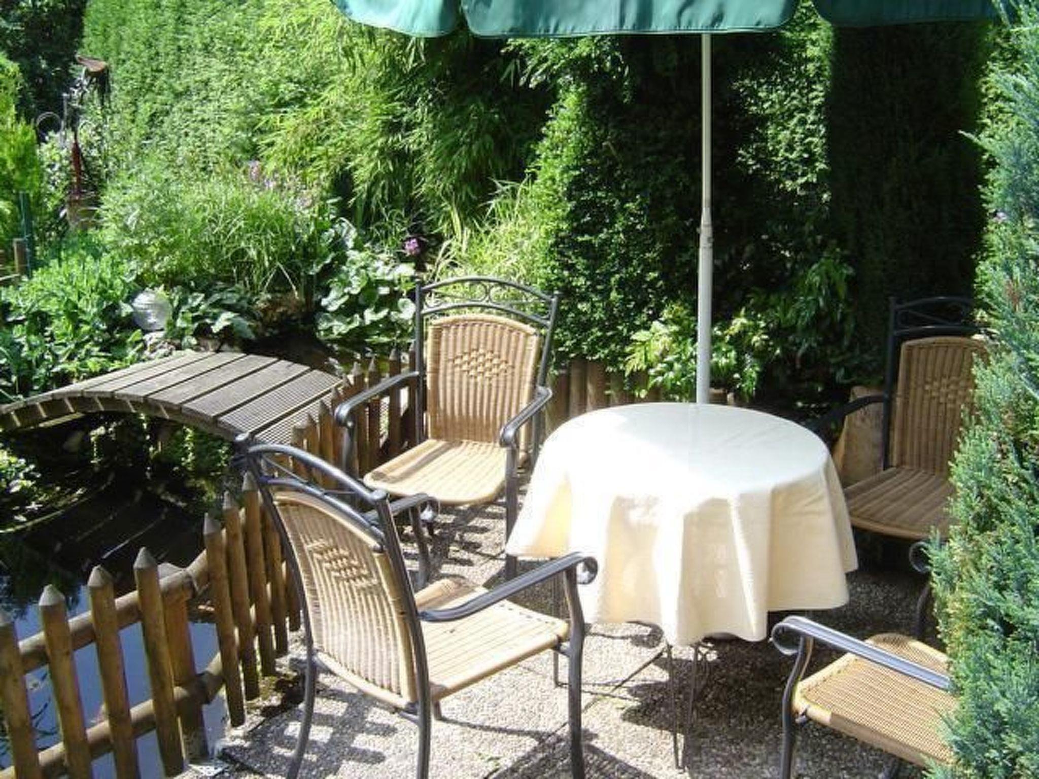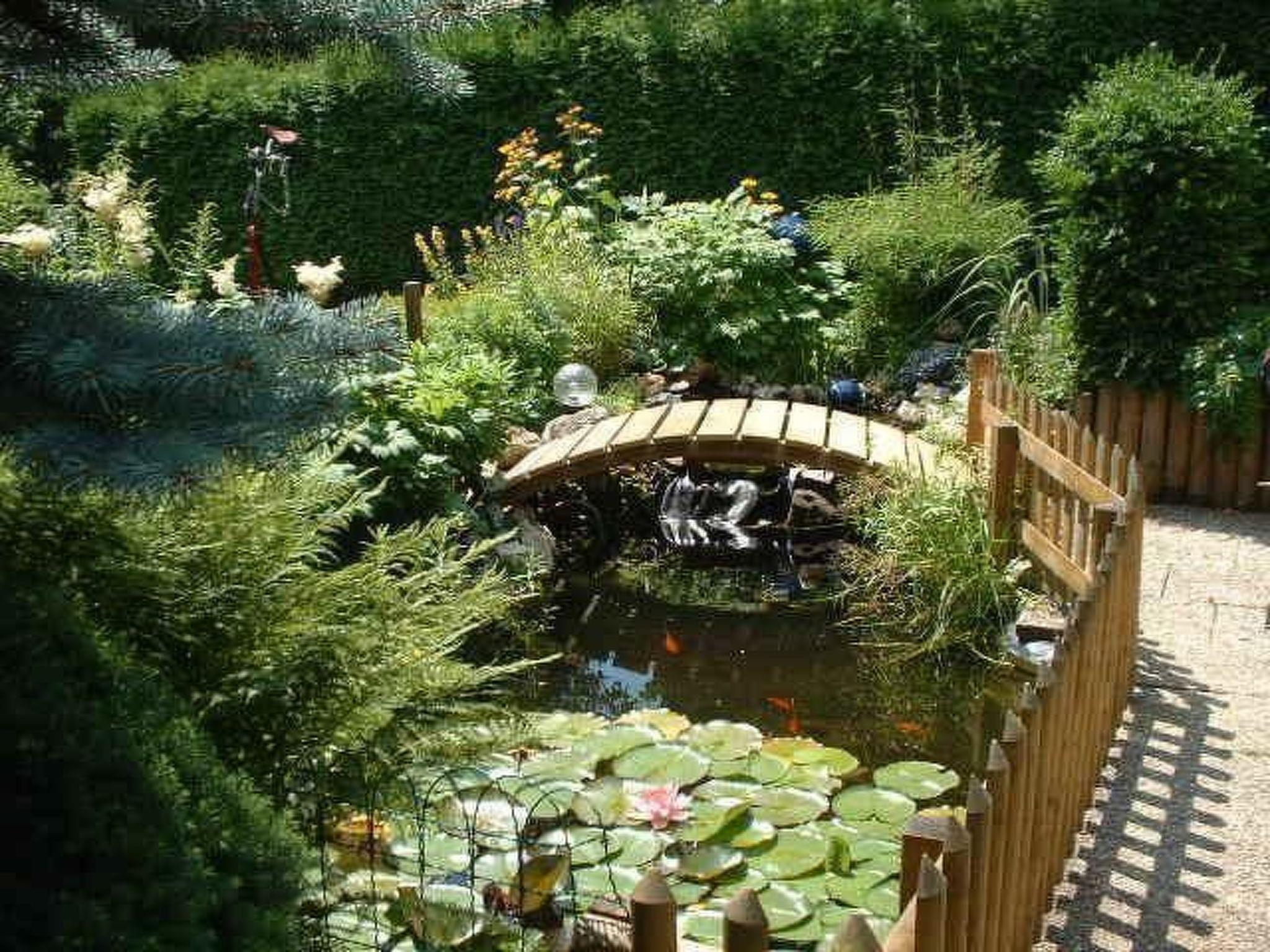 Facilities: Light-flooded living/dining room with sofa set, dining area and satellite TV, WLAN, barrier-free shower, WC, washing machine, storage room, fitted kitchen, 1 bedroom, vine-covered pergola with large seating area and open fireplace. The view of the garden with koi pond is a dream! A seating area right by the pond invites you to linger. Towels, bed and table linen and kitchen inventory are of course provided. The kitchen is very well equipped. The bathroom with underfloor heating offers every comfort with an oversized, barrier-free shower, WC and washing machine. In the living-dining room you can spend cosy evenings with a flat-screen TV, comfortable sofa set with 3-seater, 2-seater and armchair as well as a dining set.