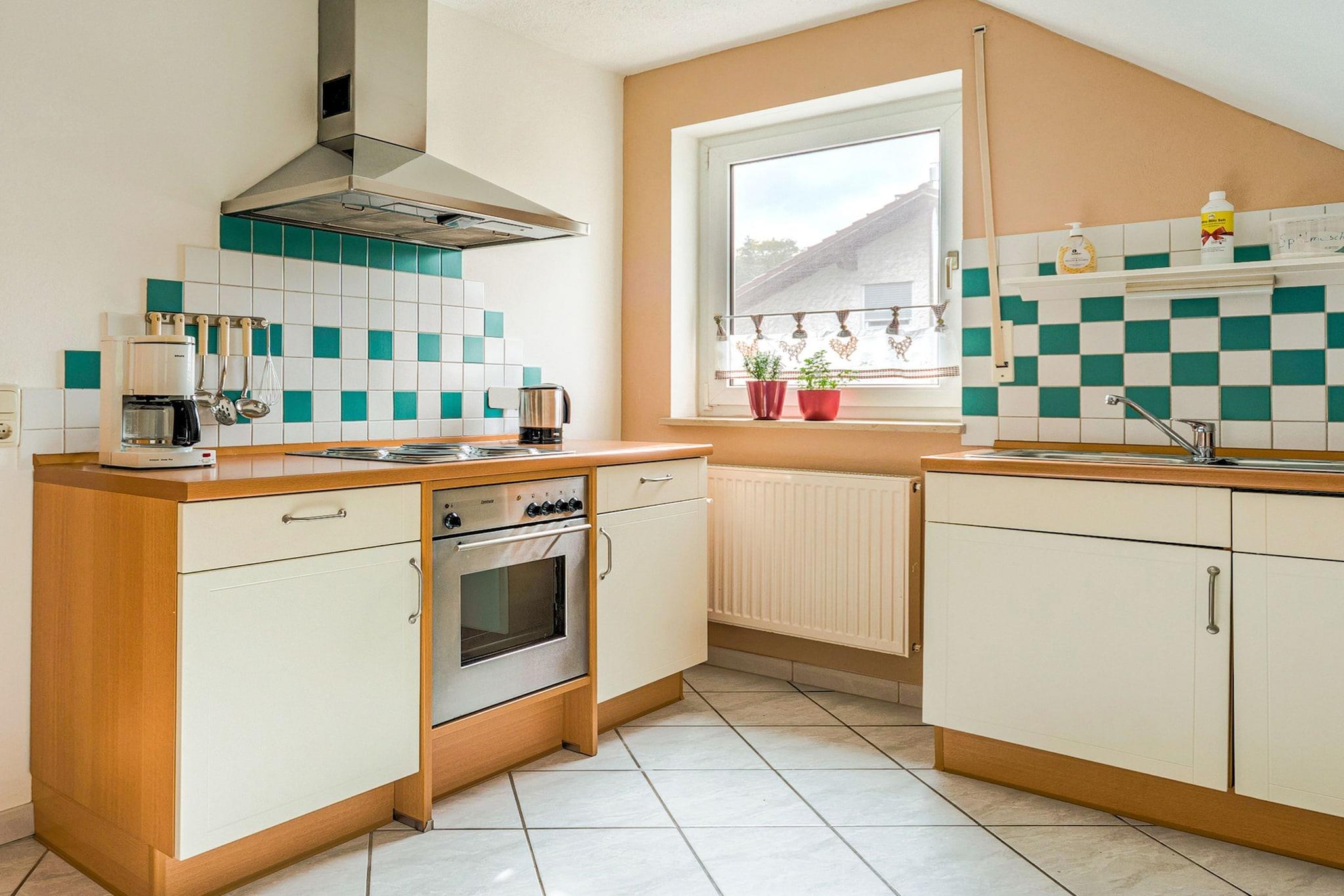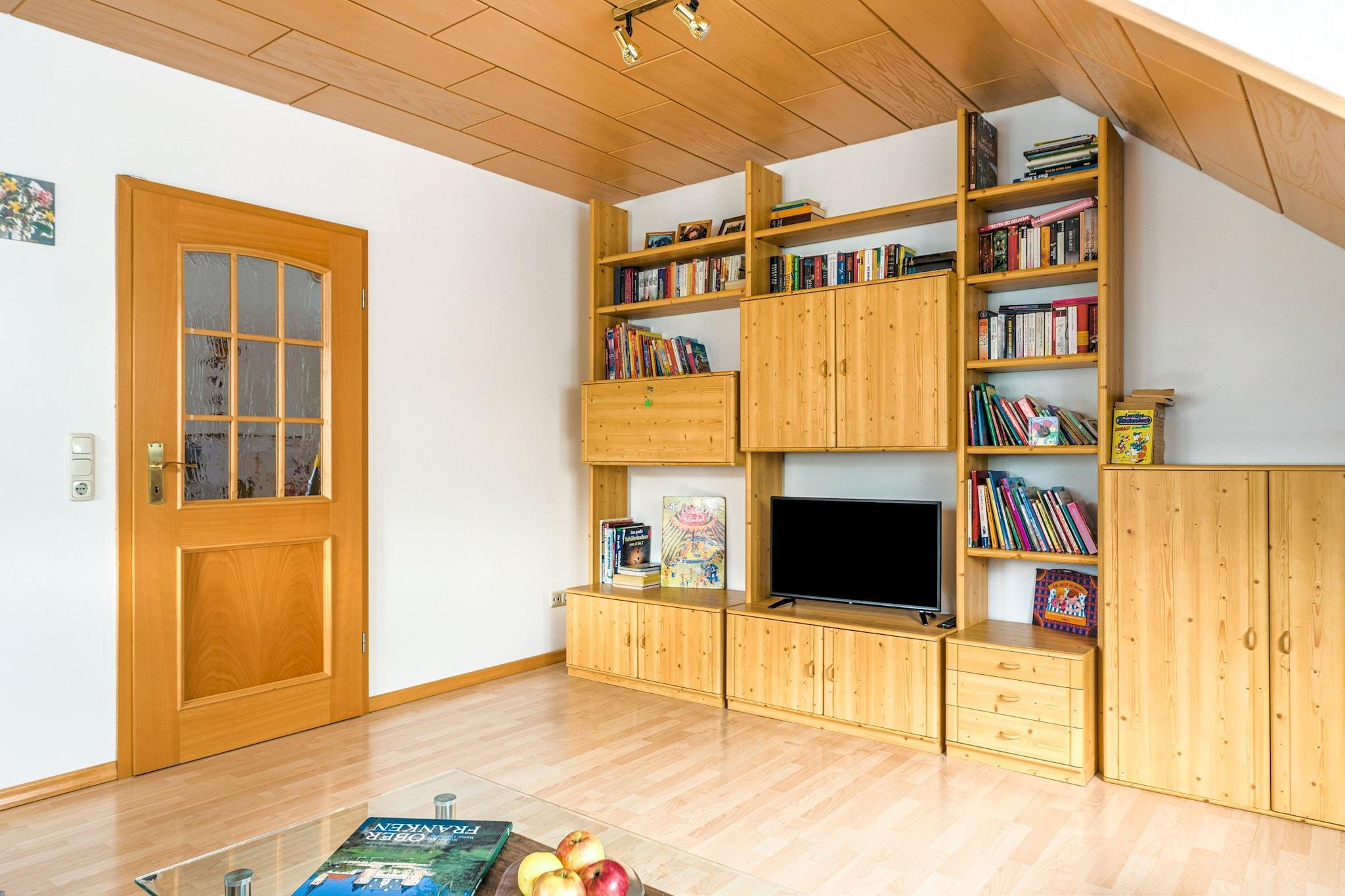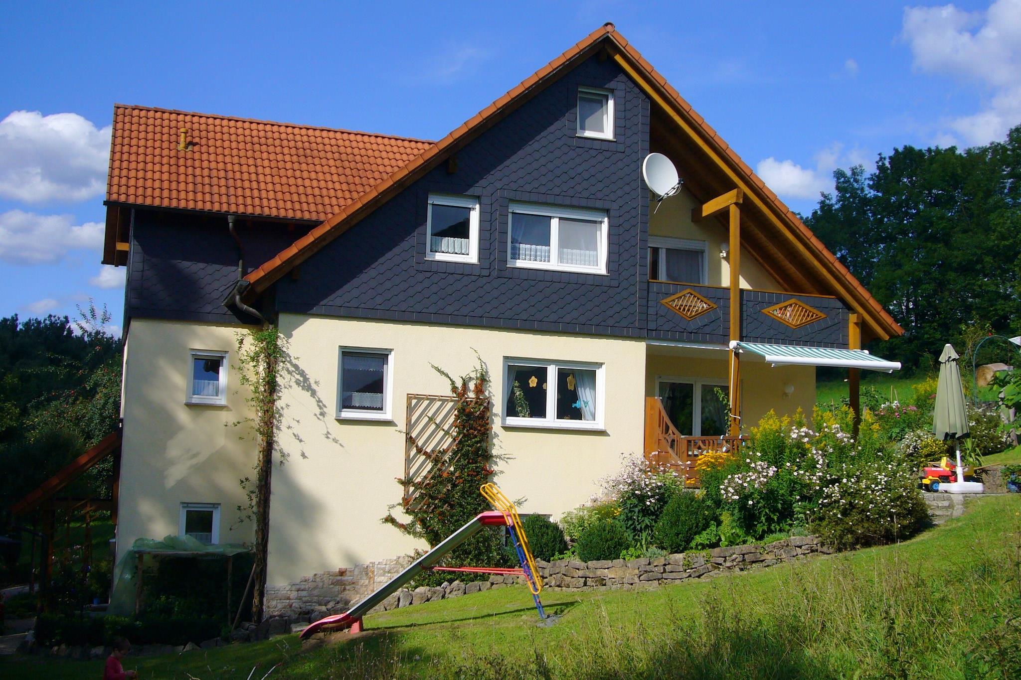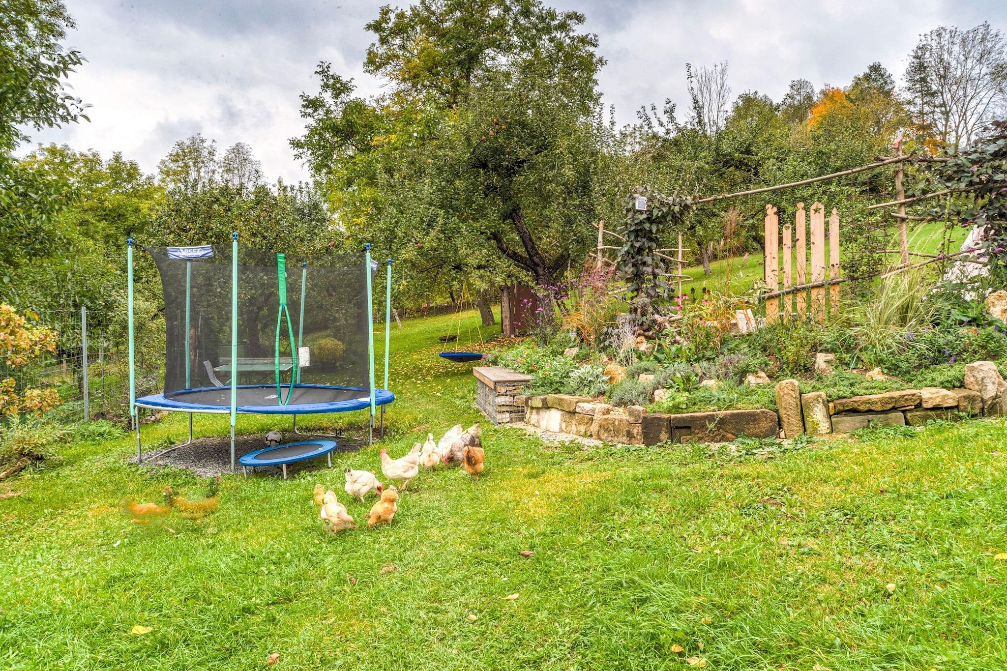Denne hyggelige og velindrettede 2-værelses lejlighed i Marktrodach, Bayern, er ideel til en familie på 4, der ønsker at slappe af og udforske naturen. Lejligheden ligger på 2. sal og tilbyder et fredeligt oase med en fælles have, privat balkon og en betalt sauna for lidt velfortjent afslapning. Beliggende kun 300 m fra byens centrum og 700 m fra almindelige forsyninger og en offentlig swimmingpool, er alt hvad du behøver inden for rækkevidde. Den omkringliggende skov (200 m) er perfekt til lange gå- og cykelture. Hvis du er i humør til en kulturrejse, byder Bamberg (67 km) på en katedral, et bryggerimuseum og historisk charme. For en længere dagstur er Prag 280 km væk. Lejligheden har et fuldt udstyret køkken med ovn og et badeværelse med badekar at nyde efter en dag udendørs. Nyd dine måltider eller morgenkaffen på balkonen, mens du nyder den friske luft. Dette er en god base for vandreture, langrend eller bare nyde det fredelige frankiske landskab.