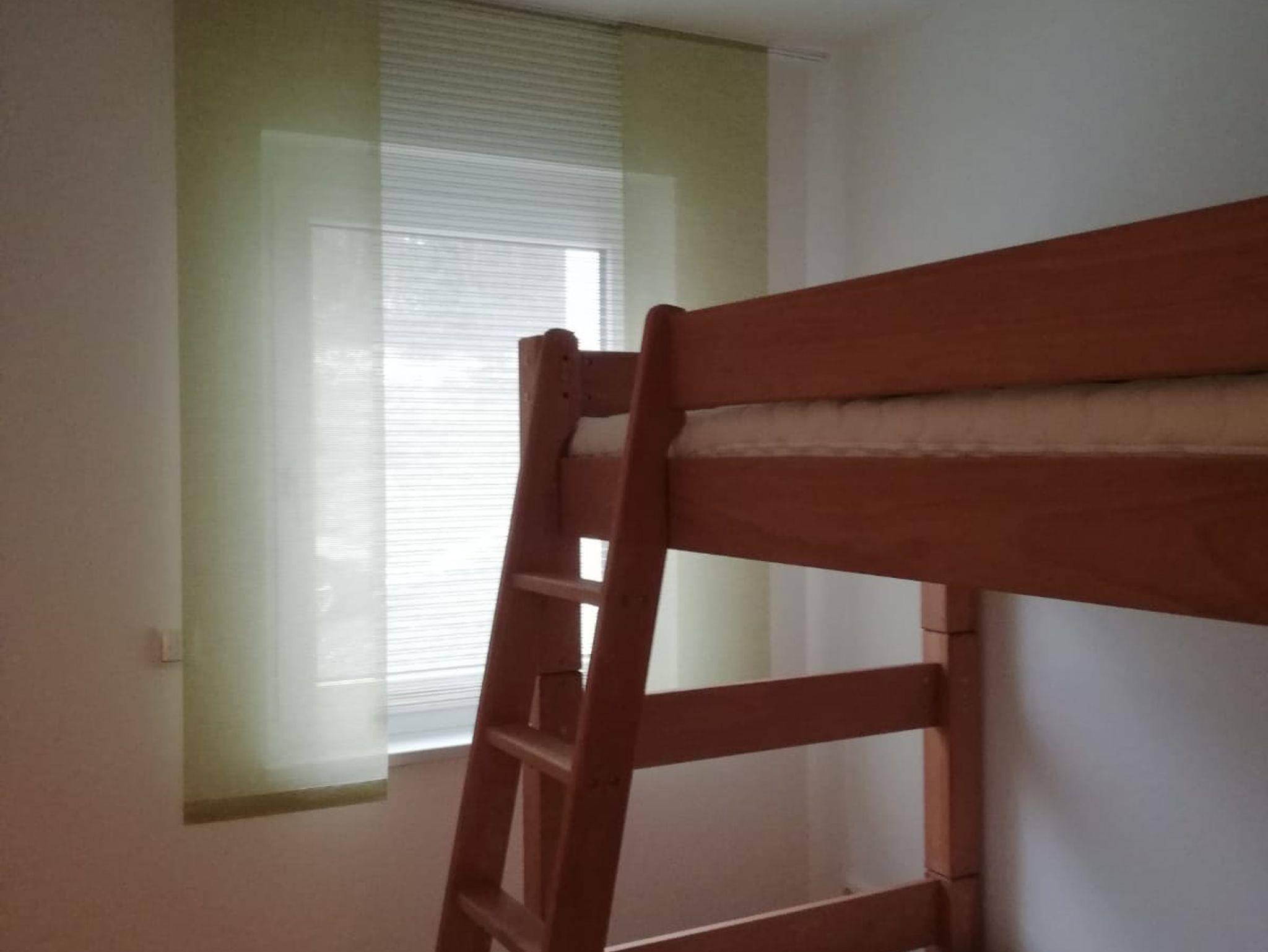 Die Wohnung verfügt über zwei Schlafzimmer. Ein Schlafzimmer ist mit einem Doppelbett ausgestattet, das zweite Schlafzimmer mit einem Etagenbett. Im kombinierten Wohn- und Kochbereich steht für die fünfte und sechste Person ein komfortables Schlafsofa zur Verfügung. Zudem befindet sich im Wohnzimmer ein TV und eine Essecke. Die Küche ist komplett ausgestattet (Herd, Backofen, Kühlschrank, Gefrierfach, Geschirrspüler, Kaffeemaschine, Wasserkocher, Geschirr, Besteck, Küchenwäsche und viele weitere Küchenutensilien). Das neue Tageslichtbadezimmer ist mit Dusche, Handtuchtrockner, Bidet und WC ausgestattet.