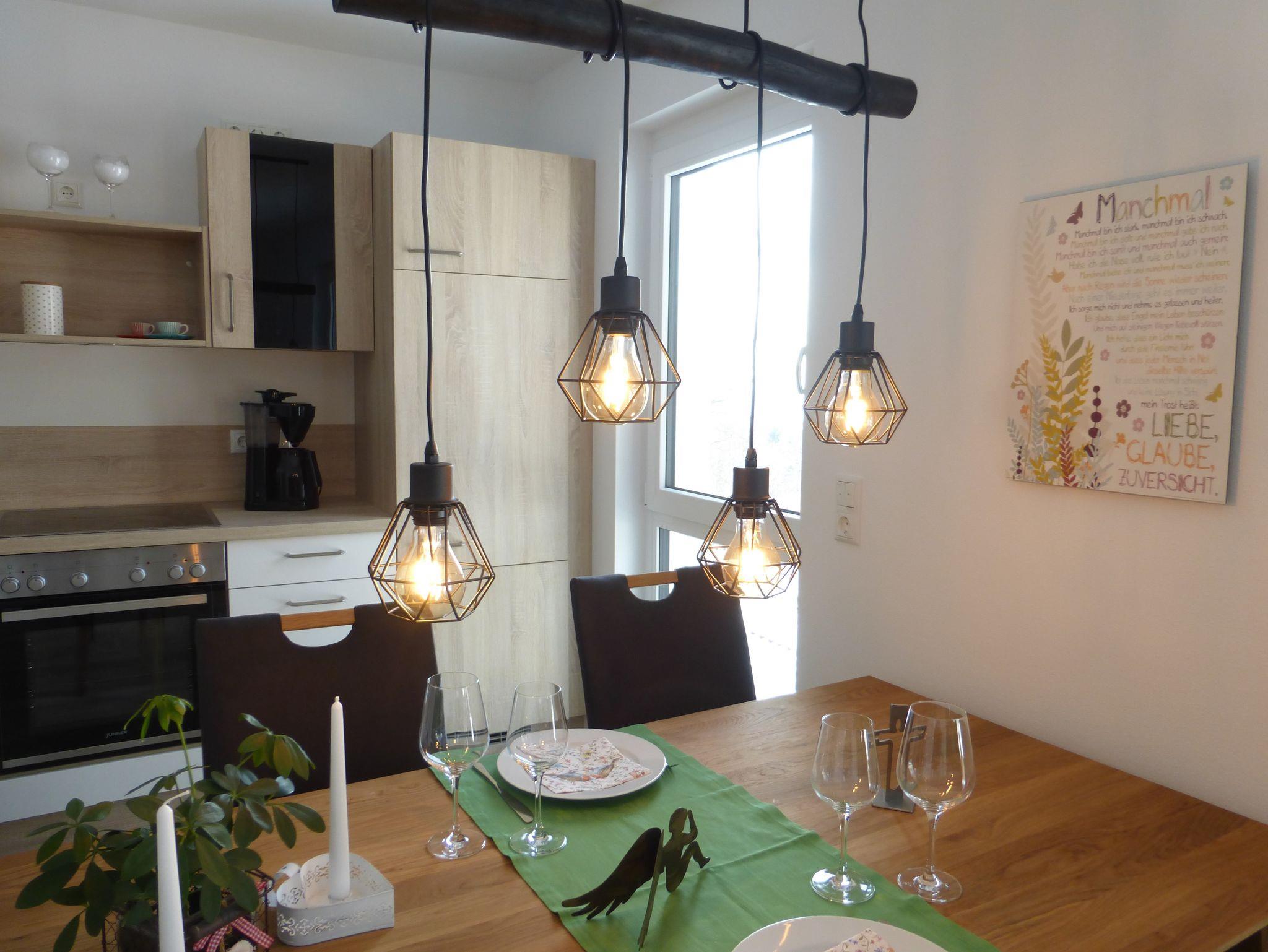 Die moderne und hochwertig eingerichtete Wohnung im Neubau ist 68qm groß und verfügt über eine Terrasse mit Sitzmöglichkeiten. Sie genießen einen herrlichen Blick auf das Lichtenfelser Tal, den Staffelberg und den liebevoll angelegten Garten. Hier können Sie gemütlich in Ihren Tag starten oder den Tag ausklingen lassen.