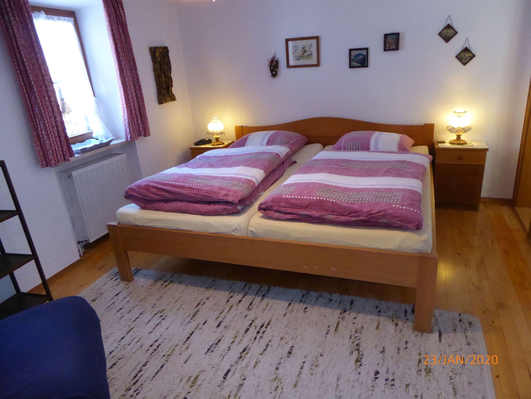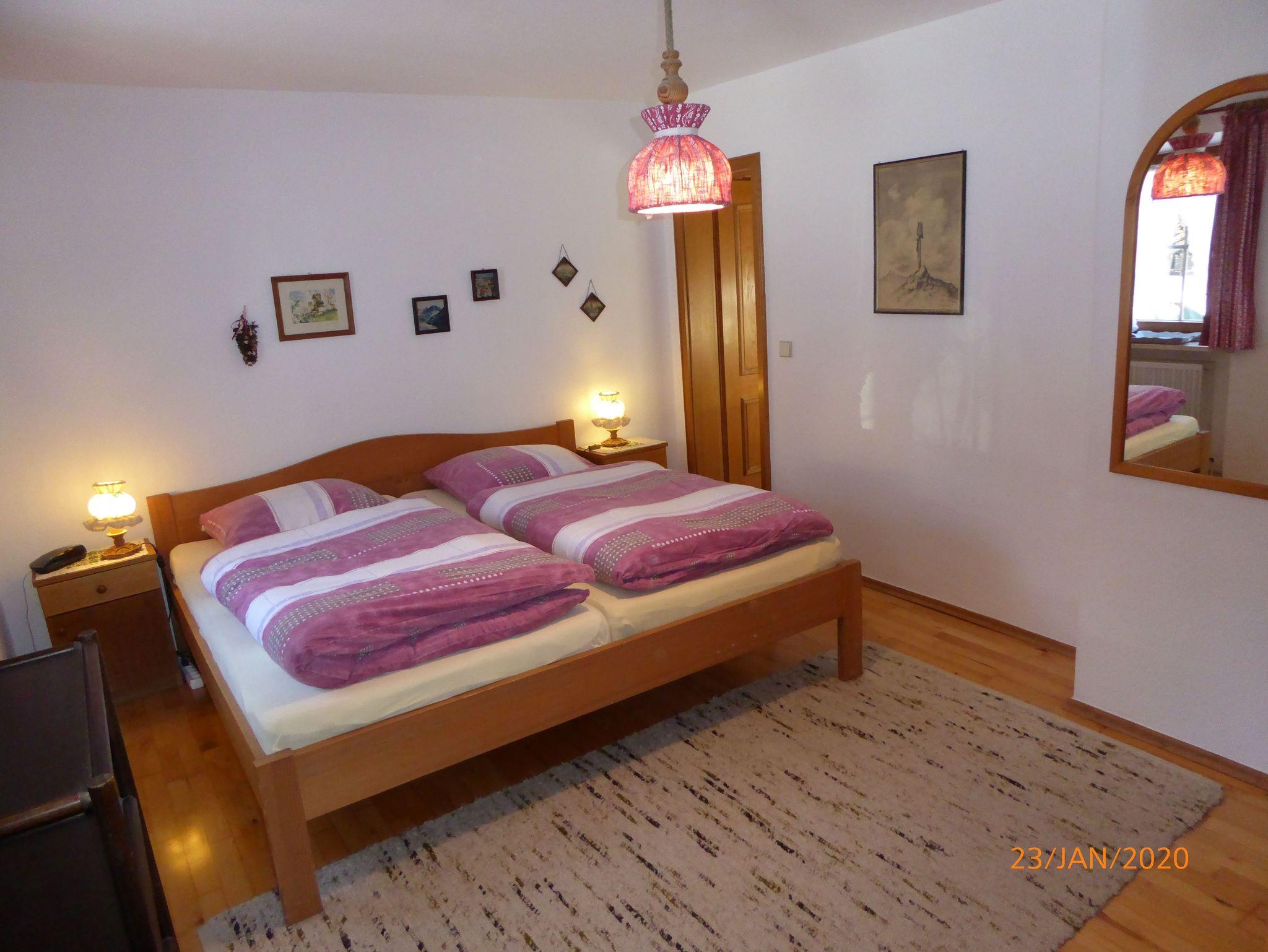Schlafzimmer. Das kleinere Zimmer hat ein französisches Doppelbett und
