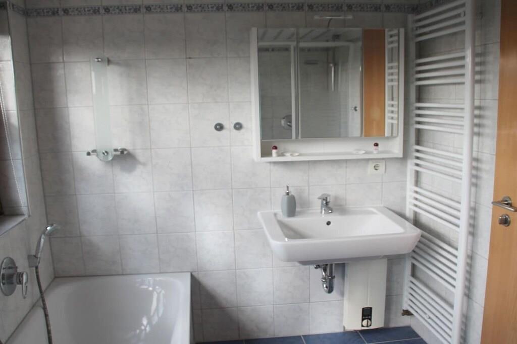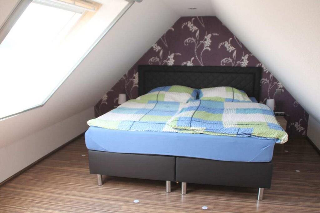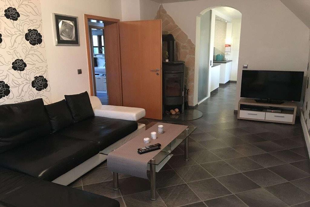 Modern eingerichtete Ferienwohnung am Rande des Ruhrgebiets im ländlichen Marl - Polsum! Die Ferienwohnung befindet sich in sehr ruhiger Sackgassenlage. Bis zu 6 Gäste finden hier auf 75m² Platz. Zu den Highlights gehören eine 20m² große Dachterrasse, ein Kaminofen inklusive Brennholz und zwei Klimageräte. Das Schlafzimmer mit eigenem Ankleidebereich verfügt über eine eigene Klimaanlage, die auch in den Sommermonaten für einen angenehmen Schlaf sorgt. Schlafgelegenheiten bestehen neben den neuen Boxspringbetten in den Schlafzimmern zusätzlich auf einem Schlafsofa. Die Wohnung verfügt zudem über kostenloses High-Speed-WLAN und insgesamt drei Flachbildfernseher mit SAT-Empfang. Bei Langzeitmieten gelten Sonderkonditionen