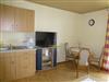 Die Ferienwohnung 1 hat ein Wohnzimmer mit Küchenzeile, Sofa und Essecke; Schlafzimmer mit Doppelbett; Nasszelle mit WC und Dusche. SAT-TV im Wohnzimmer.