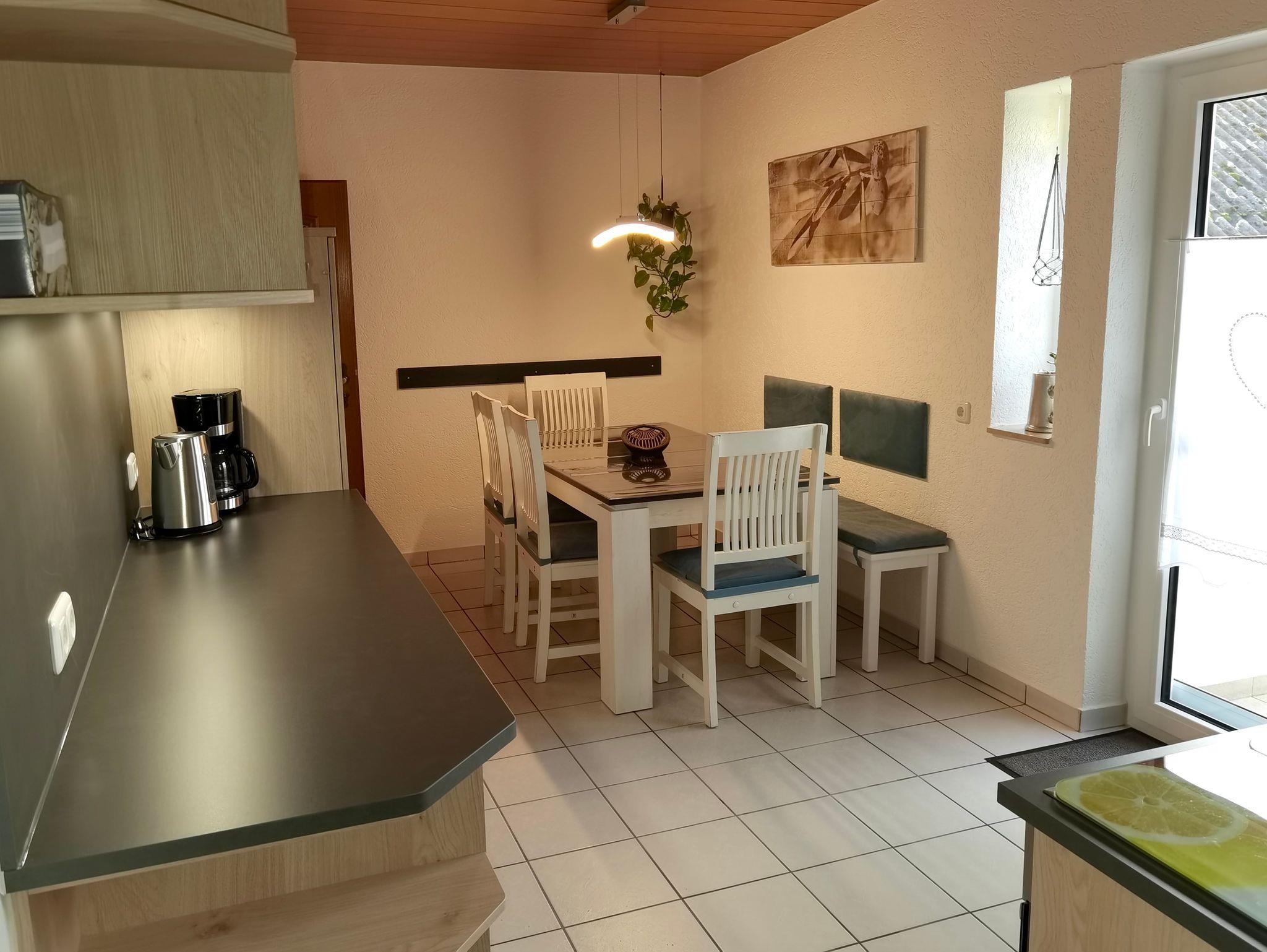 Unsere helle, gemütlich eingerichtete 2 Zimmer-Ferienwohnung befindet sich in zentraler Lage von Maroldsweisach, im Naturpark Haßberge. Die neu renovierte 78 m² Wohnung im 1. Obergeschoss verfügt über ein Schlafzimmer mit Doppelbett, ein Wohnzimmer mit Doppelschlafsofa, ein Sofa und ein neu renoviertes kleines Bad mit begehbarer Dusche. Über die voll ausgestatteten Wohnküche gelangen Sie direkt auf den großen Balkon. Küchen- und Bettwäsche sowie Handtücher und Föhn werden gestellt.