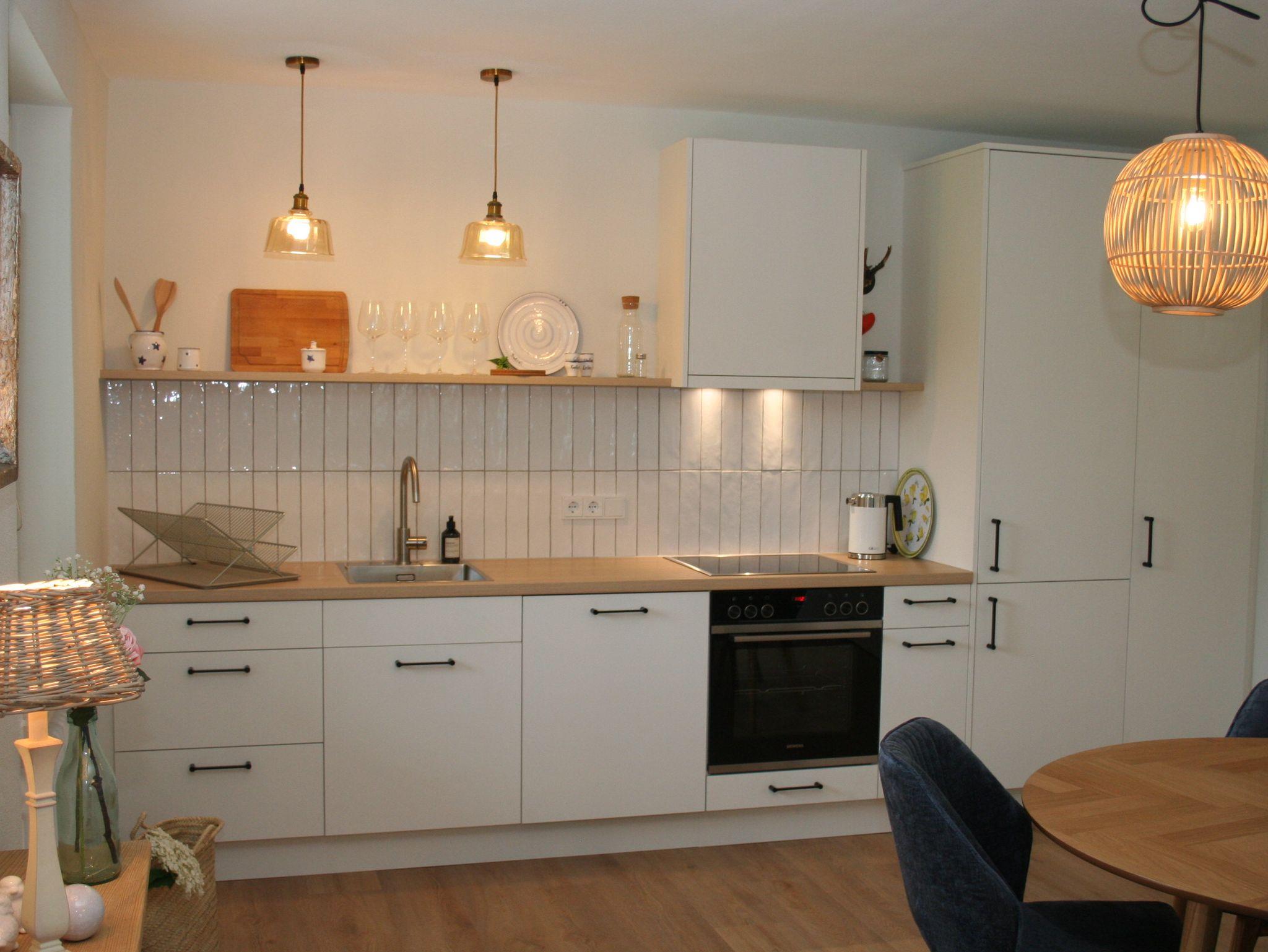 Die neu renovierte Erdgeschosswohnung, verfügt über zwei Schlafzimmer, ein bedingt barrierefreies Badezimmer, eine voll ausgestattete Küche und ein Wohnzimmer mit Panorama Fenster auf die südliche Terrasse mit Garten. Die Ferienwohnung ist nicht rollstuhlgerecht.