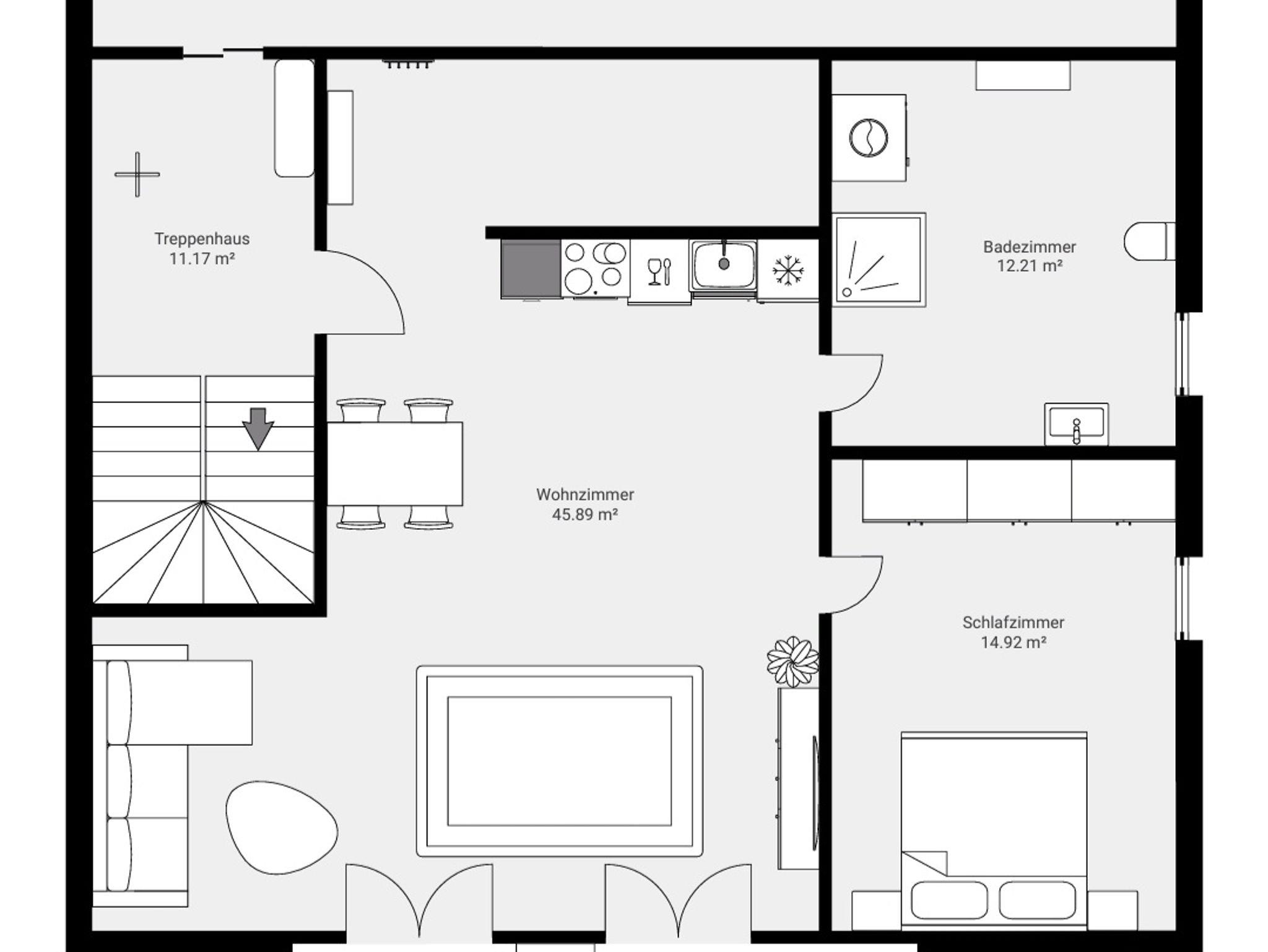 Ferienwohnung Menter, Ferienwohnung- 3 Personen, 68qm, Wohnküche, 1 Schlafzimmer, WLAN