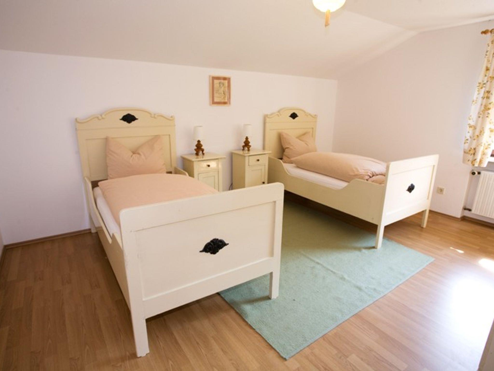 Dachgeschoßwohnung (120qm), großes Wohnzimmer, 3 getrennte Schlafzimmer, Bad mit Badewanne, Wickeltisch, Küche mit Essecke, Balkon, Kabel-TV, Radio, Spiel-Liegewiese, Grillplatz mit Gartenmöbel. Ferienwohnungsgäste erhalten günstige Sonderkonditionen beim Eintrittspreis für den Märchen-Erlebnispark Marquartstein. Nichtraucher, keine Haustiere. Ganzjährige Vermietung. Bettwäsche, Handtücher, Geschirrtücher, Kinderreisebett und Heizung inklusiv. Kurtaxe exclusiv. Endreinigung 50 €, sofern der Gast diese nicht selbst übernimmt. Gültig sind schriftliche Buchungen (auch per FAX oder Email) die von uns bestätigt wurden oder Buchungen per Internet über unserer Homepage oder Partners (z.B. . Mindestaufenthalt 3 Nächte von Januar - Juni und September - Dezember, 5 Nächte in Juli und August.