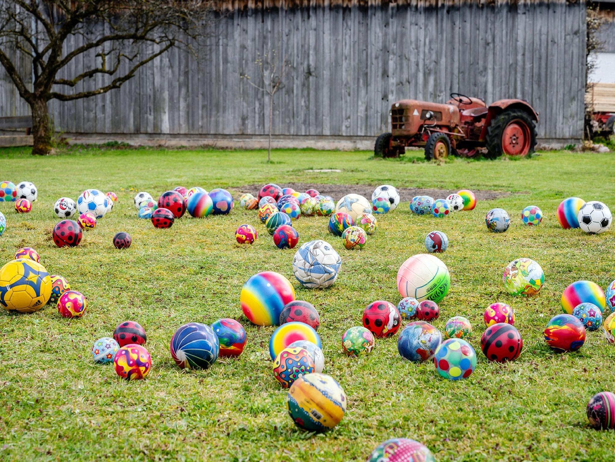 Strahlender Sonnenschein, saftig-grüne Wiesen, Blumen am Balkon und ein Kunstwerk aus rund 200 bunten Bällen auf dem Rasen rund um das Bauernhaus: Mit diesem traumhaften Anblick empfangen wir euch auf unserem Naderbauer-Hof in Piesenhausen, einem Ortsteil der Gemeinde Marquartstein im oberbayerischen Landkreis Traunstein. Wir freuen uns, unseren Gästen ein Stück unserer wunderbaren Heimat abgeben zu können. Gerne teilen wir unser Glück mit euch – sei es auf dem Ferienbauernhof, auf der Niederalm oder auf der Piesenhausener Hochalm bei einer Einkehr. Wir freuen uns auf euch!