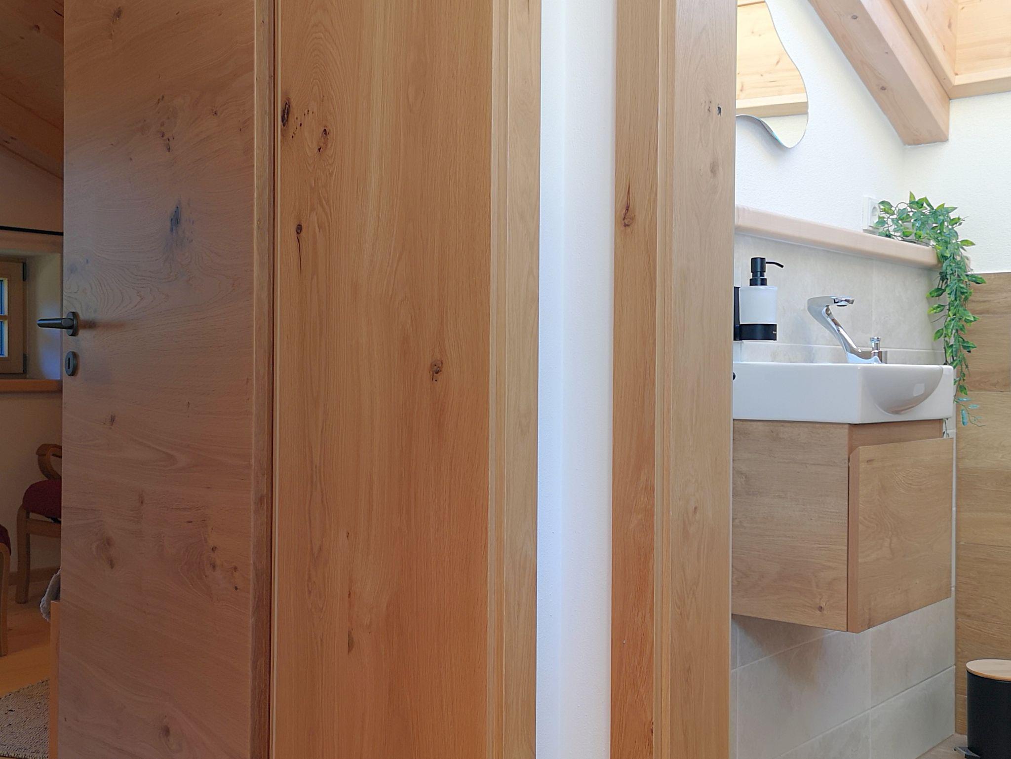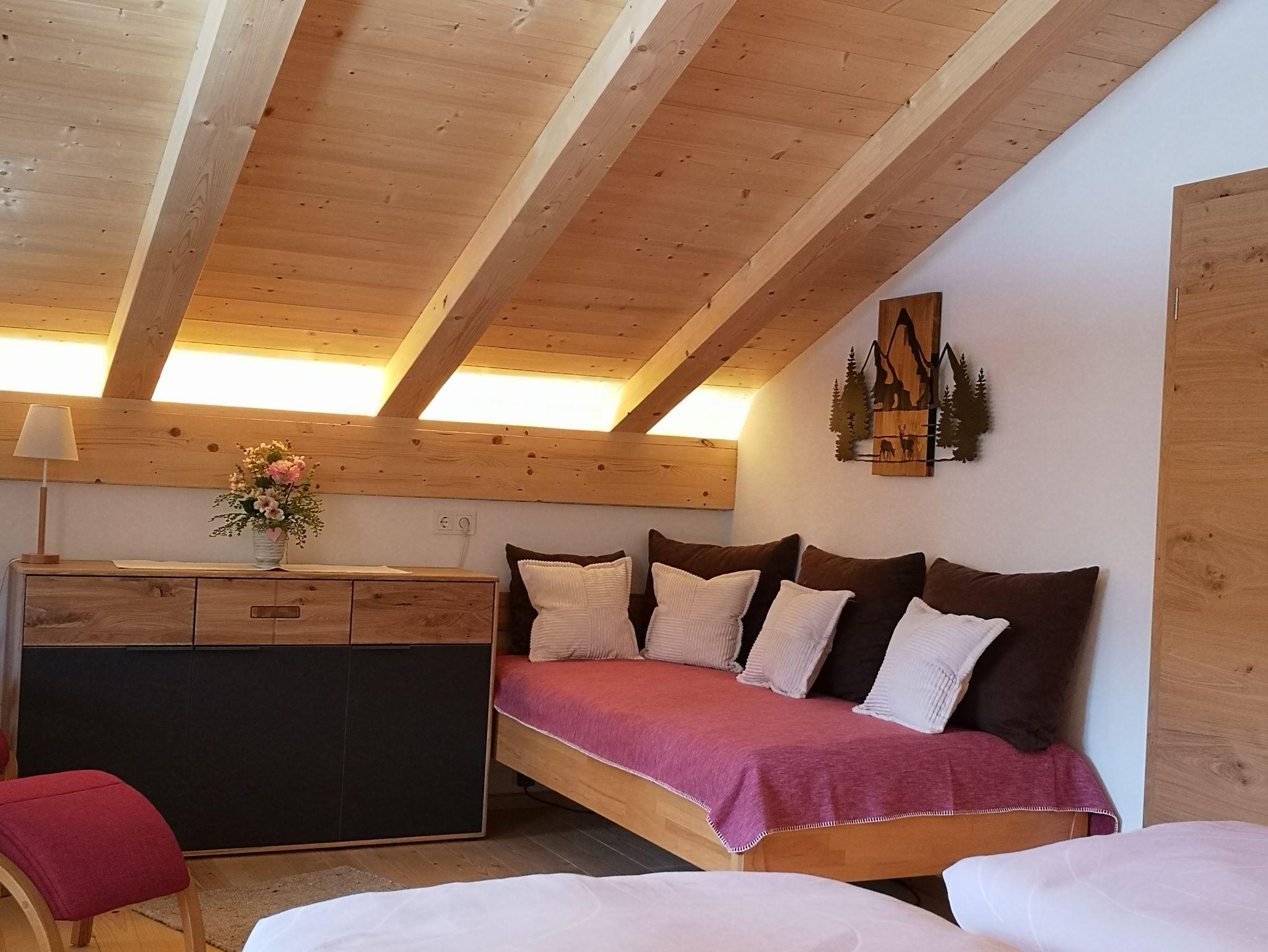 Auch im Schlafzimmer sorgen das heimische Holz und bestens ausgestattete Betten für einen sehr guten und erholsamen Schlaf. Das WC ist direkt nebenan.